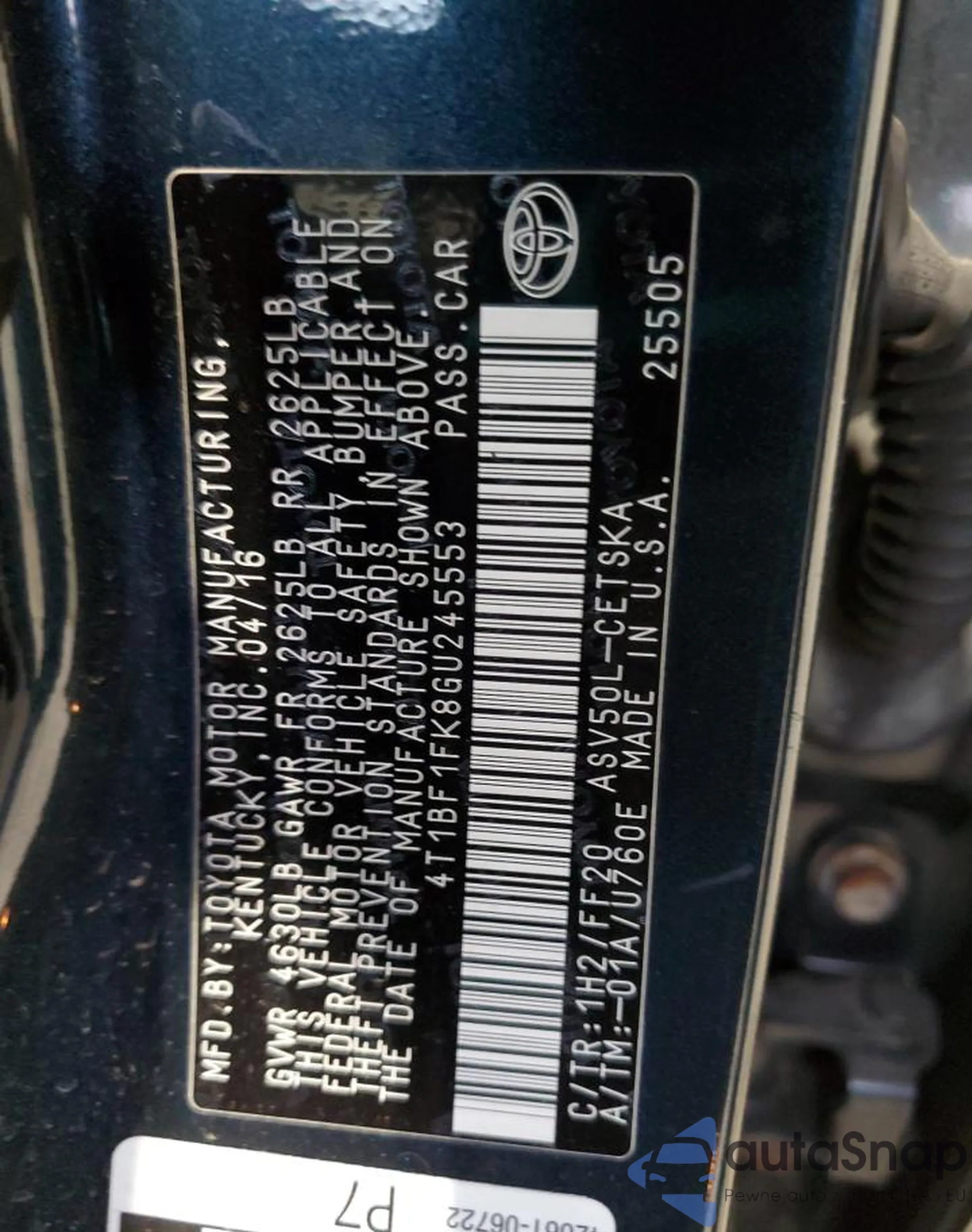VIN: 4T1BF1FK8GU245553