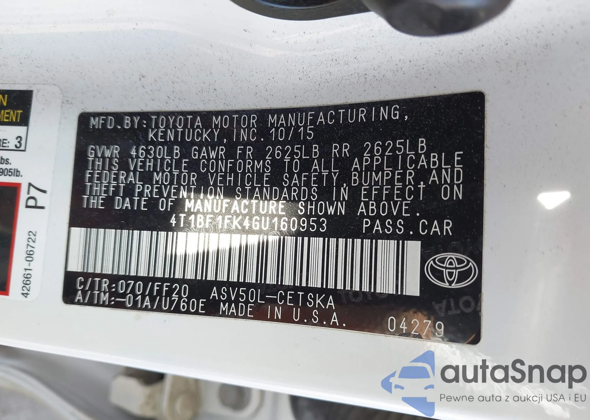 VIN: 4T1BF1FK4GU160953