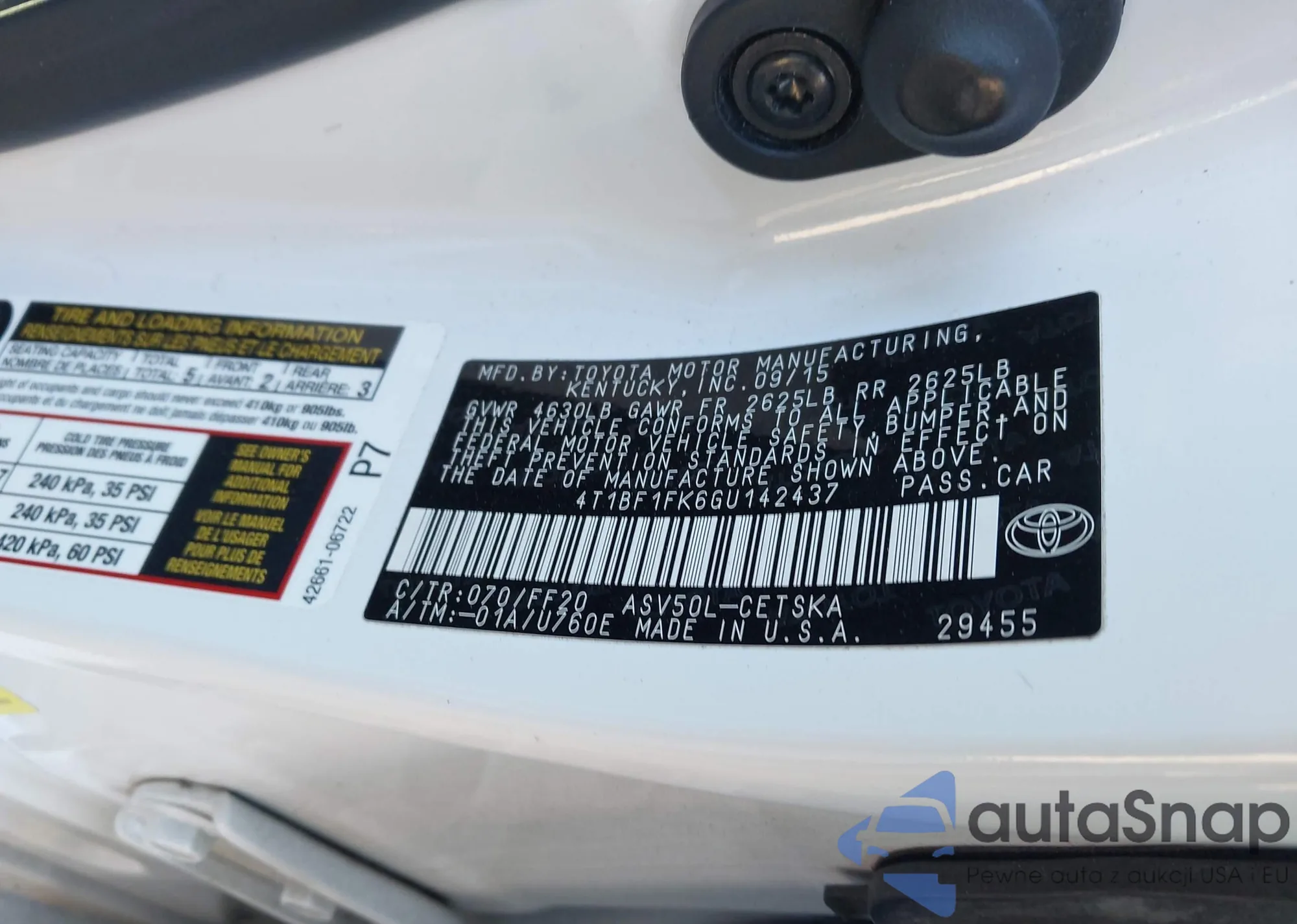 VIN: 4T1BF1FK6GU142437