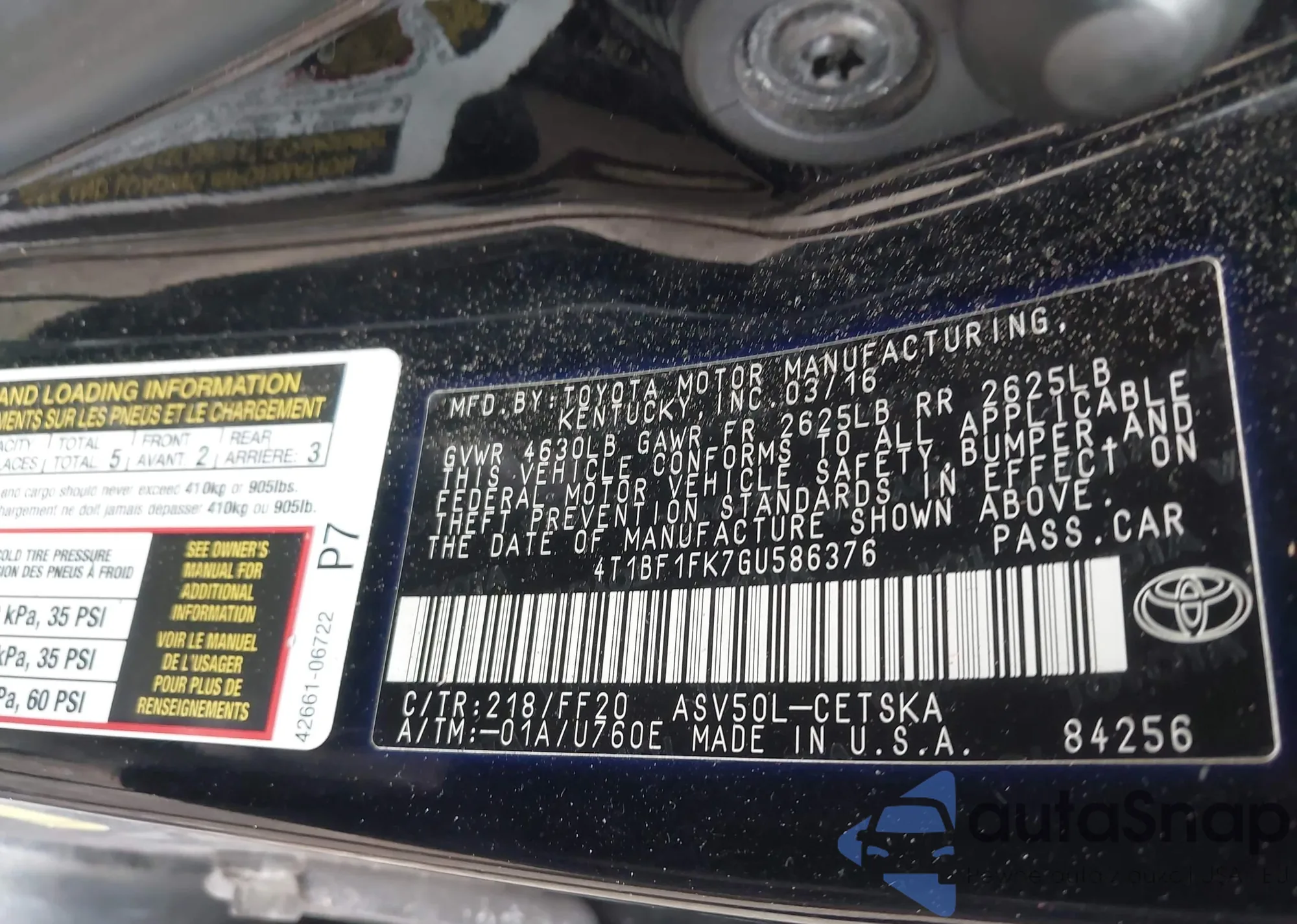 VIN: 4T1BF1FK7GU586376