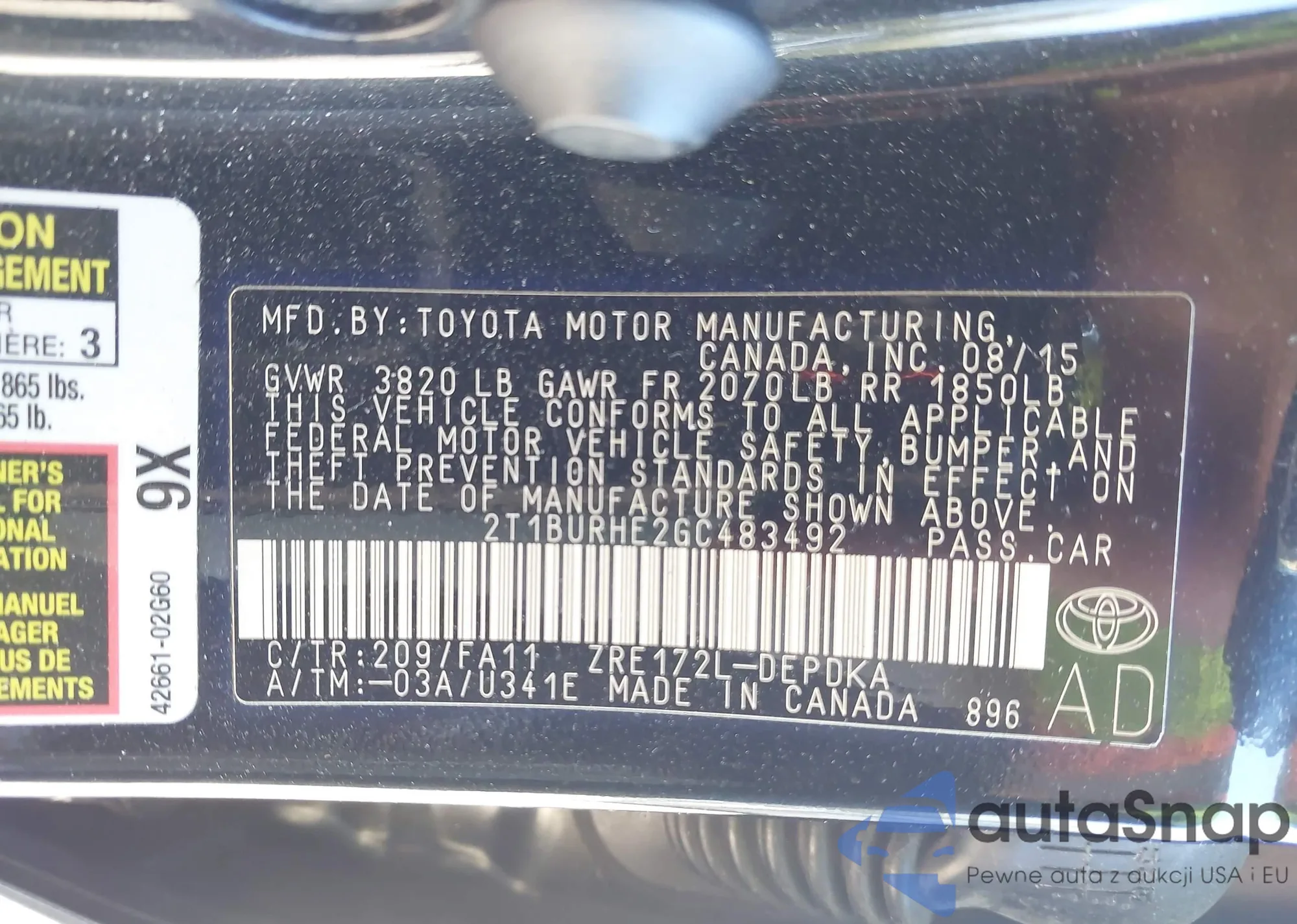 VIN: 2T1BURHE2GC483492