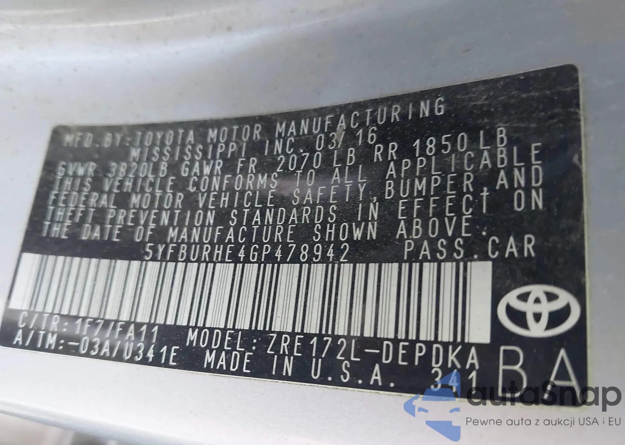 • VIN: 5YFBURHE4GP478942