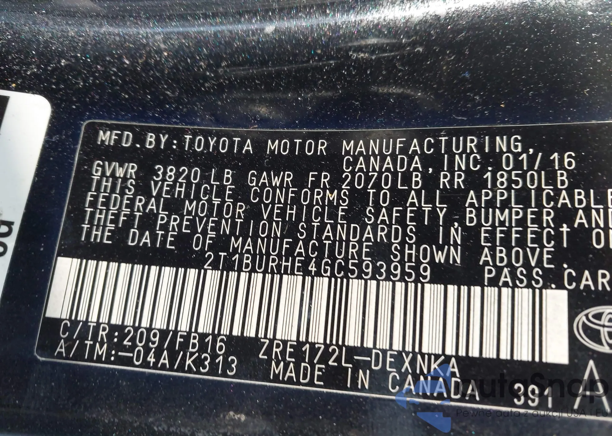 VIN: 2T1BURHE4GC593959