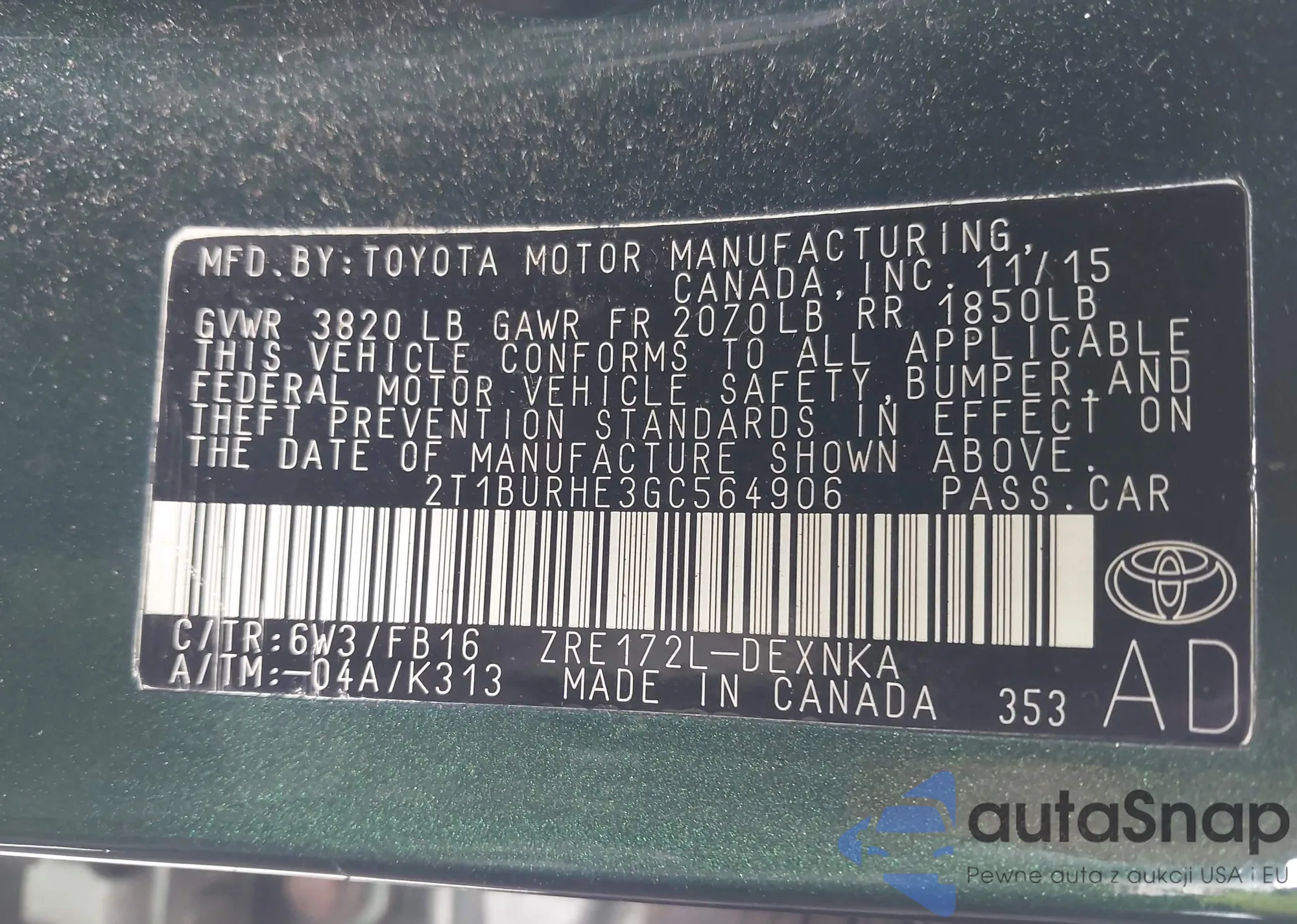 VIN: 2T1BURHE3GC564906