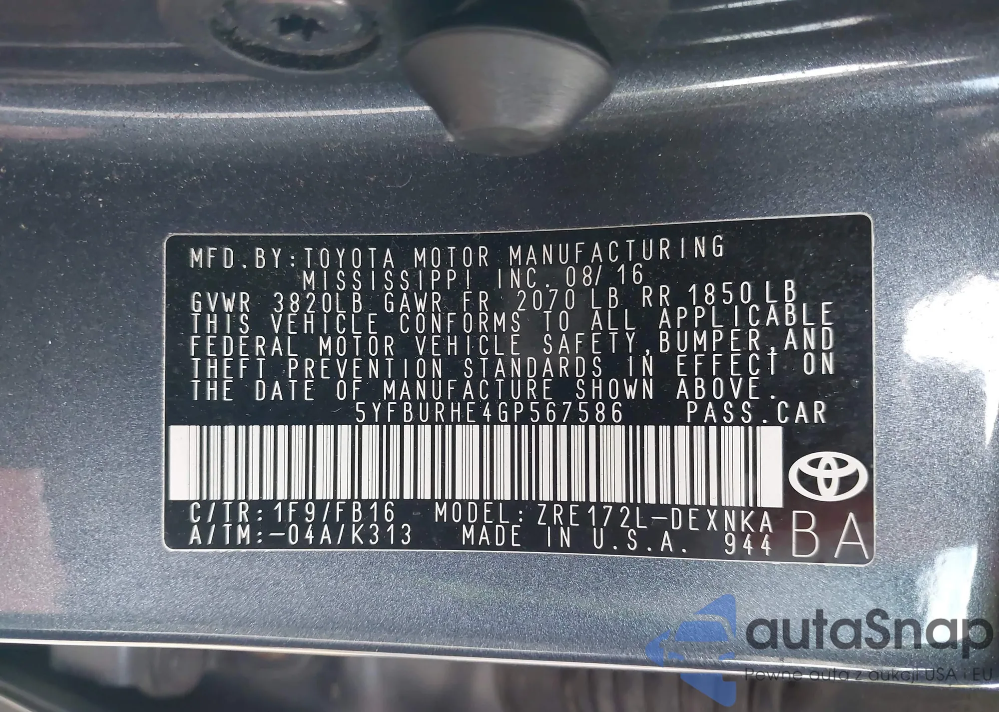 Марка: 2016 Toyota Corolla L...