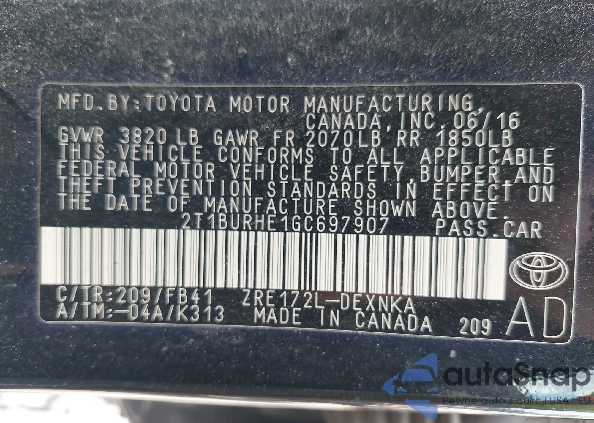 VIN: 2T1BURHE1GC697907