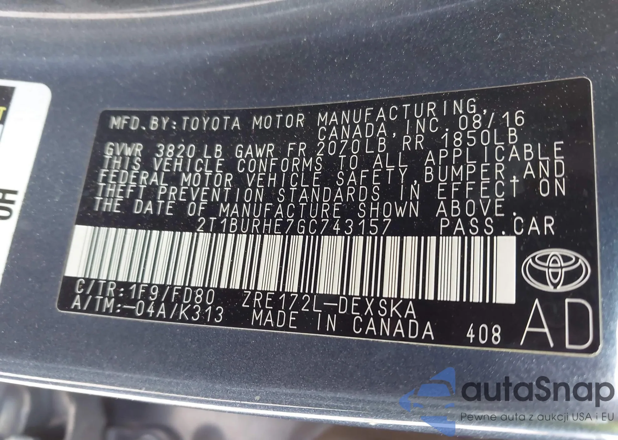VIN: 2T1BURHE7GC743157