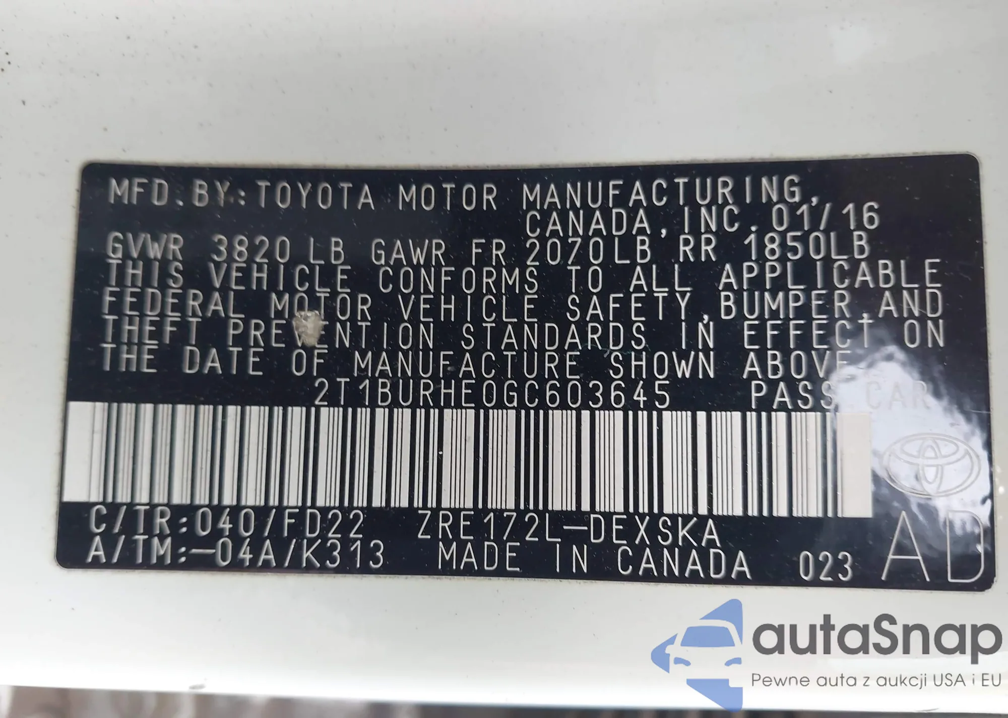 2T1BURHE0GC603645 IAAI