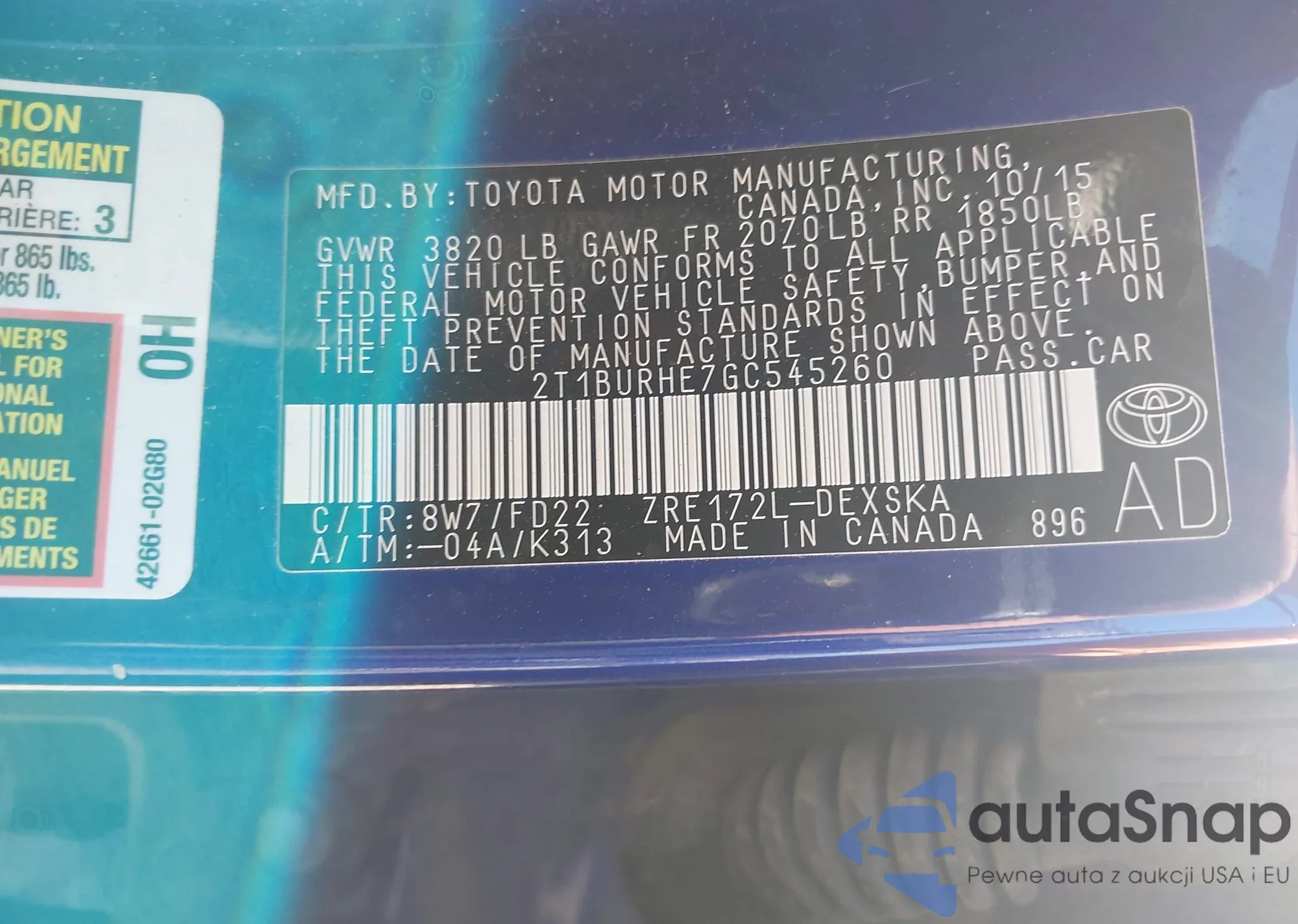 VIN: 2T1BURHE7GC545260