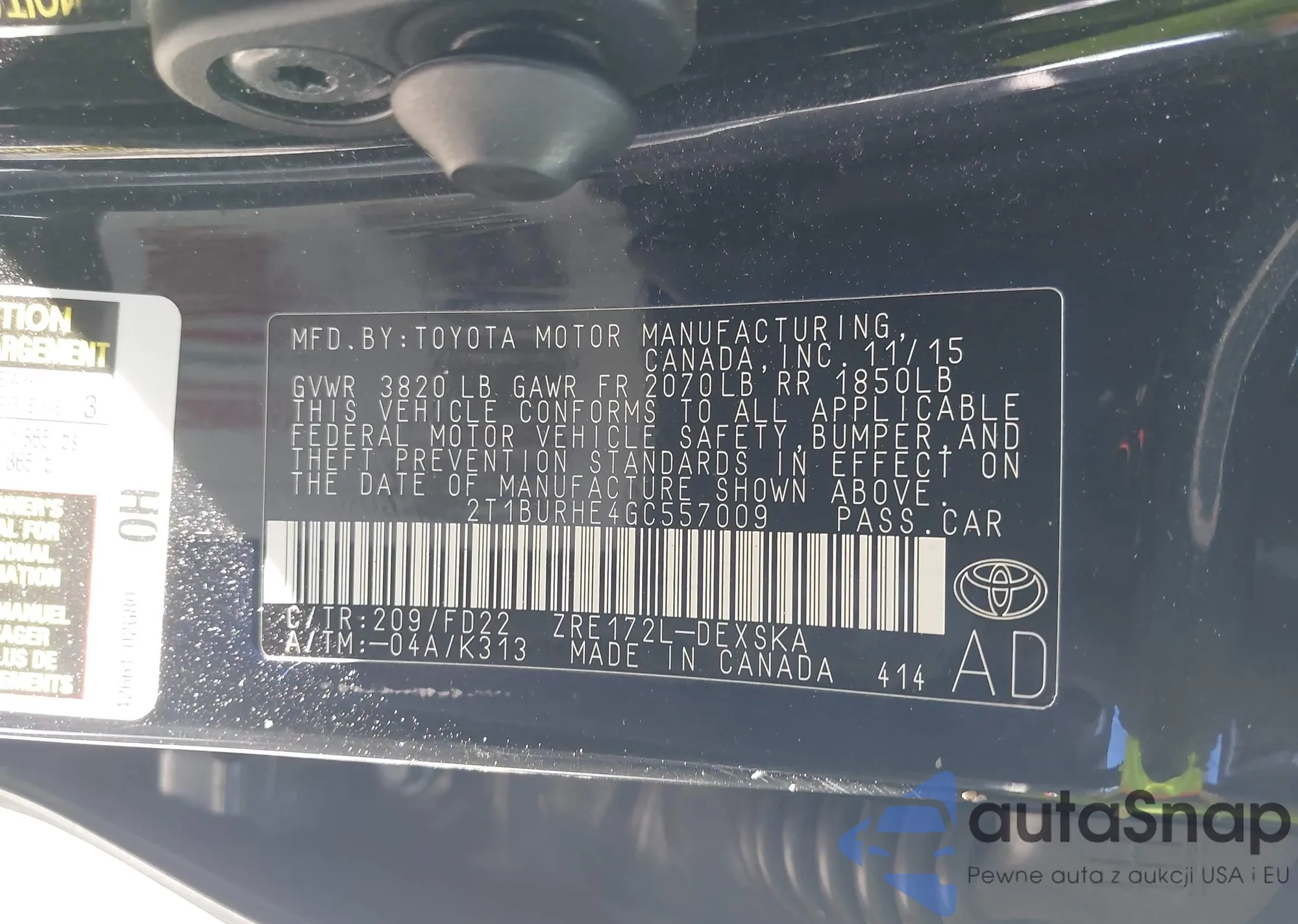 • VIN: 2T1BURHE4GC557009