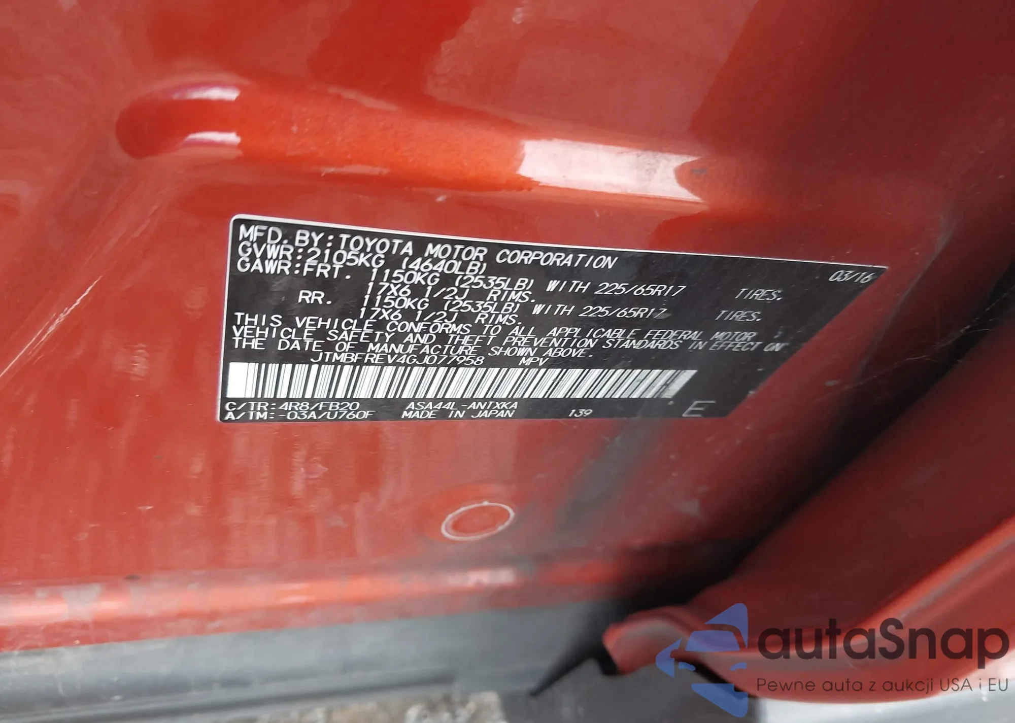 VIN: JTMBFREV4GJ077958