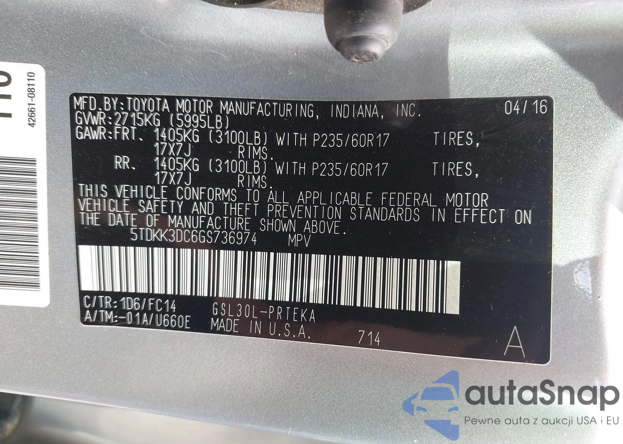 • VIN: 5TDKK3DC6GS736974