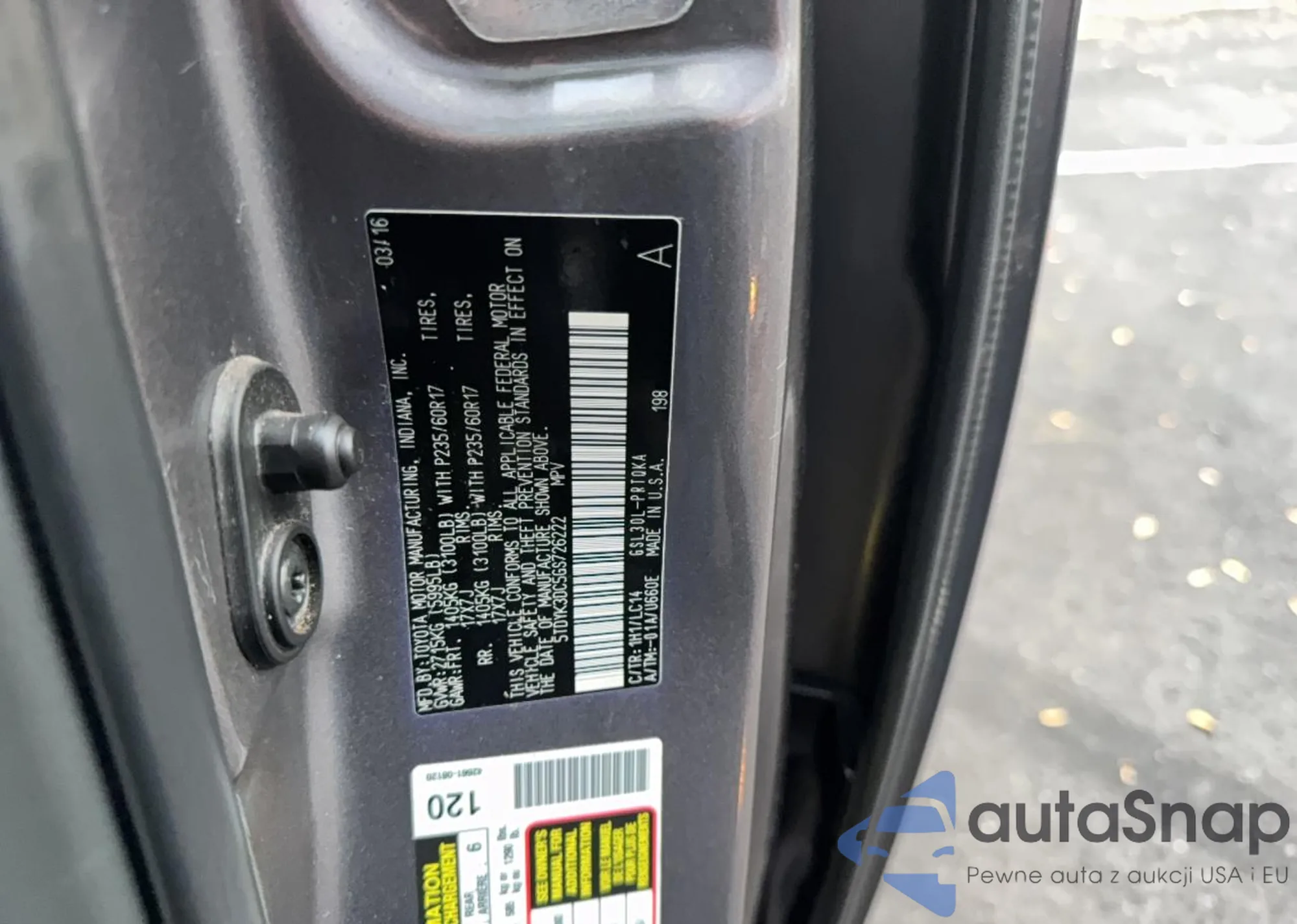 VIN: 5TDYK3DC5GS726222
