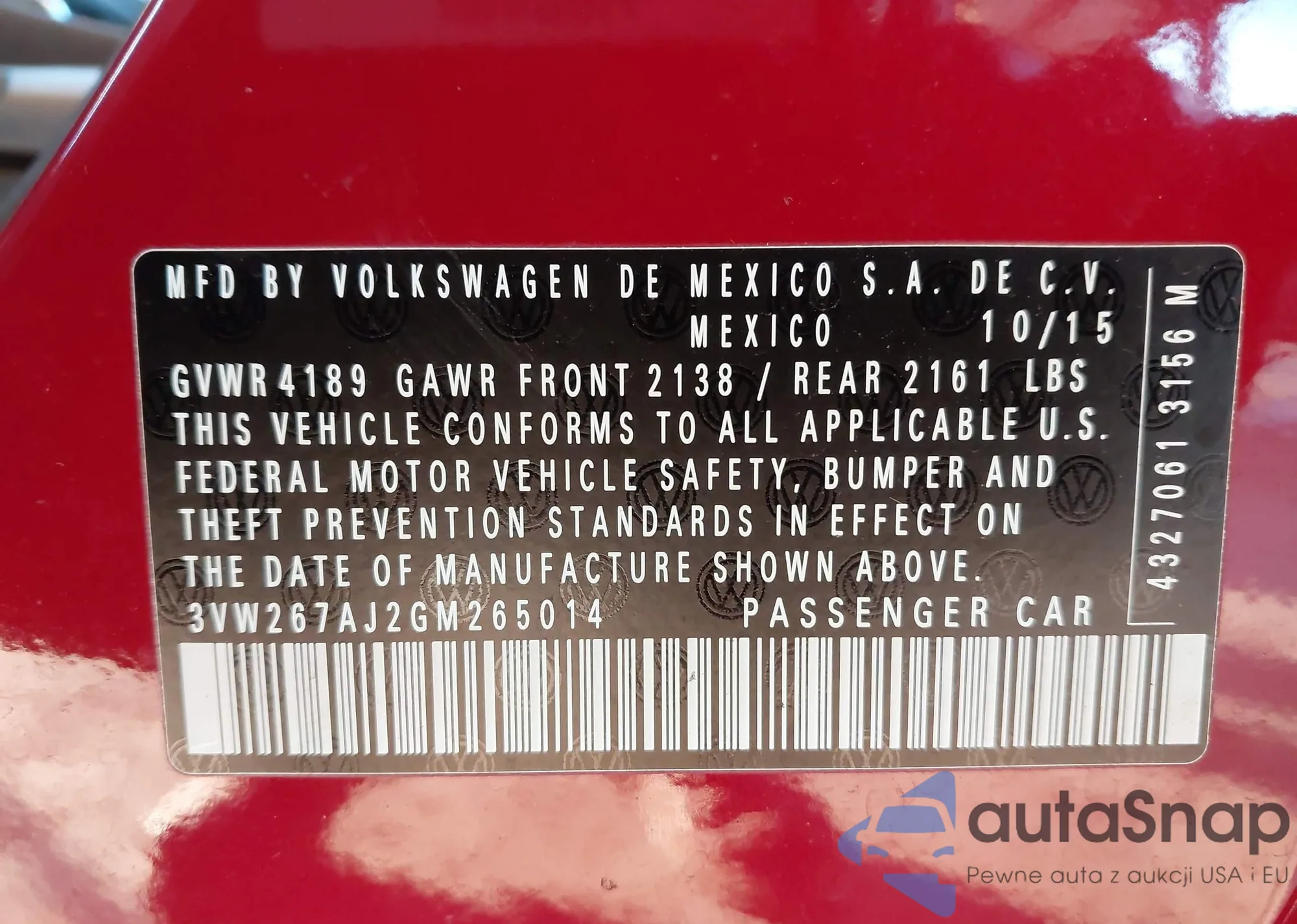 • VIN: 3VW267AJ2GM265014