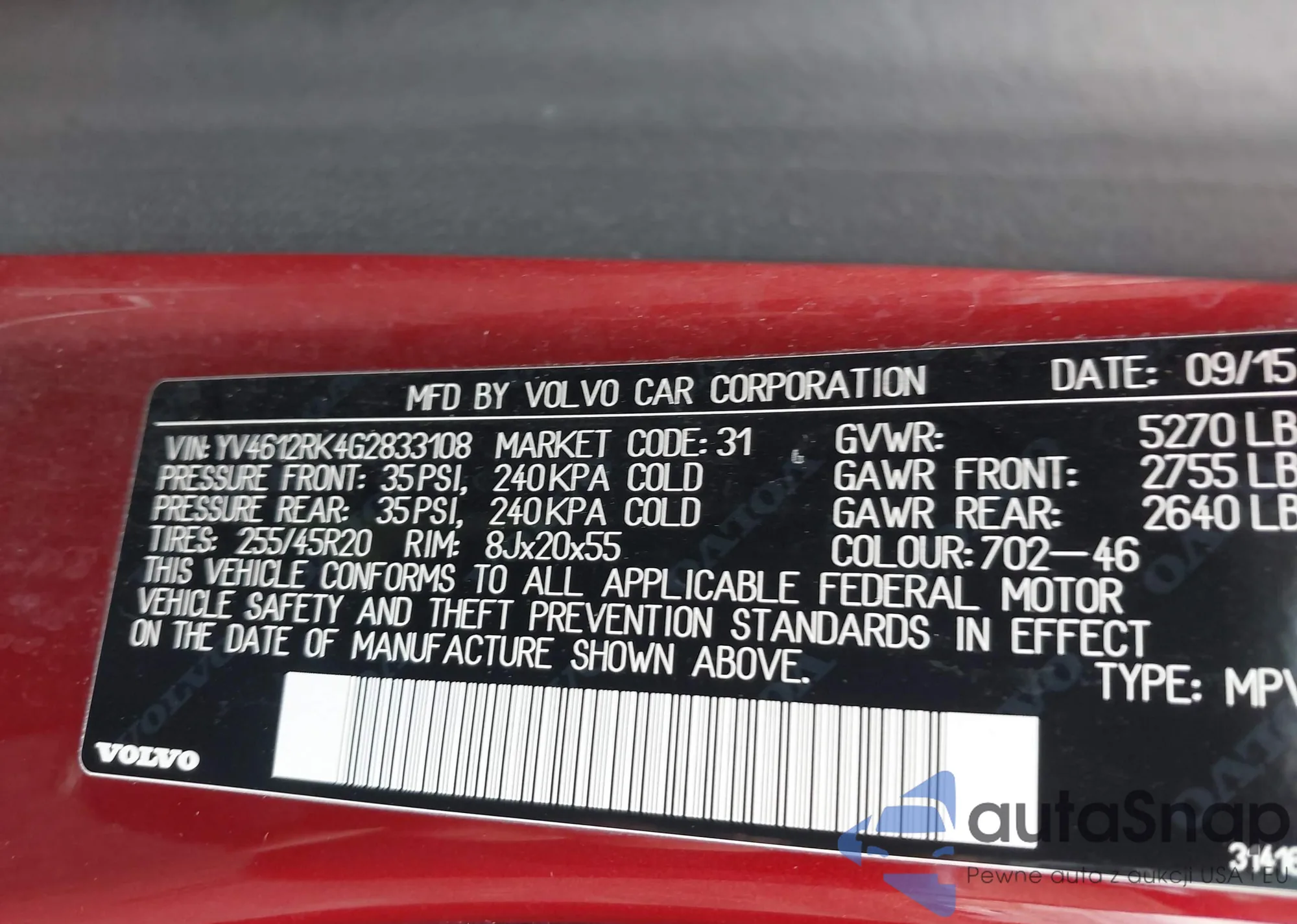 VIN: YV4612RK4G2833108