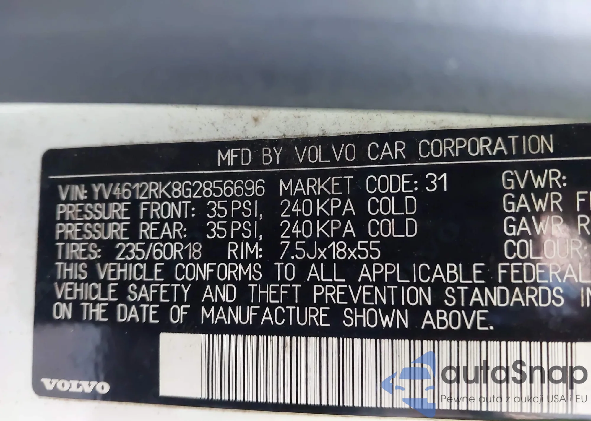 VIN: YV4612RK8G2856696