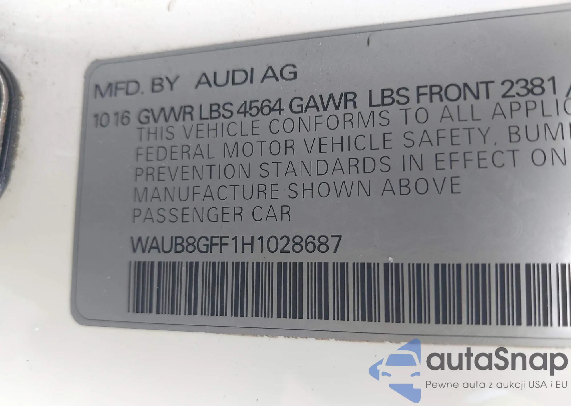 VIN: WAUB8GFF1H1028687