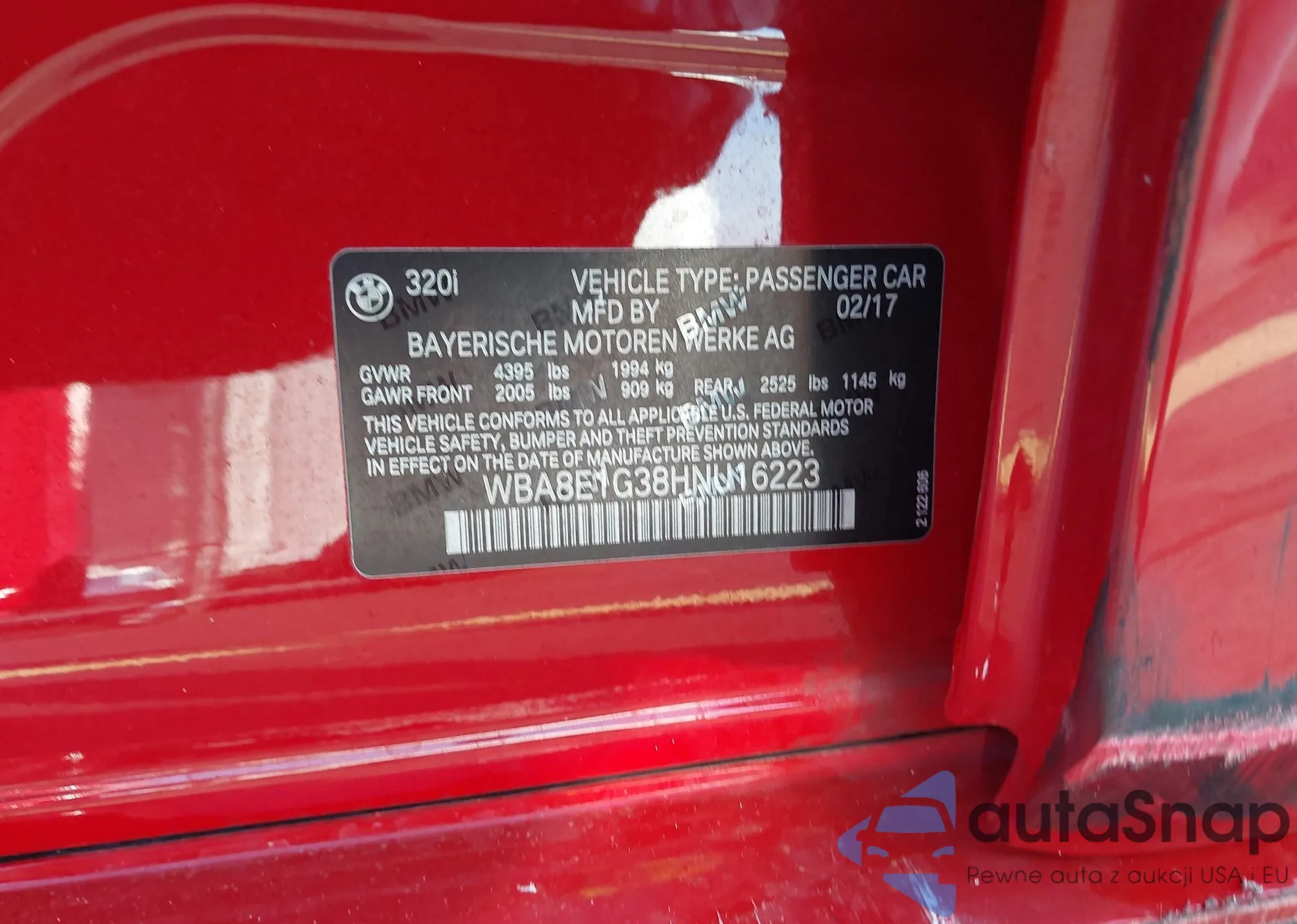VIN: WBA8E1G38HNU16223