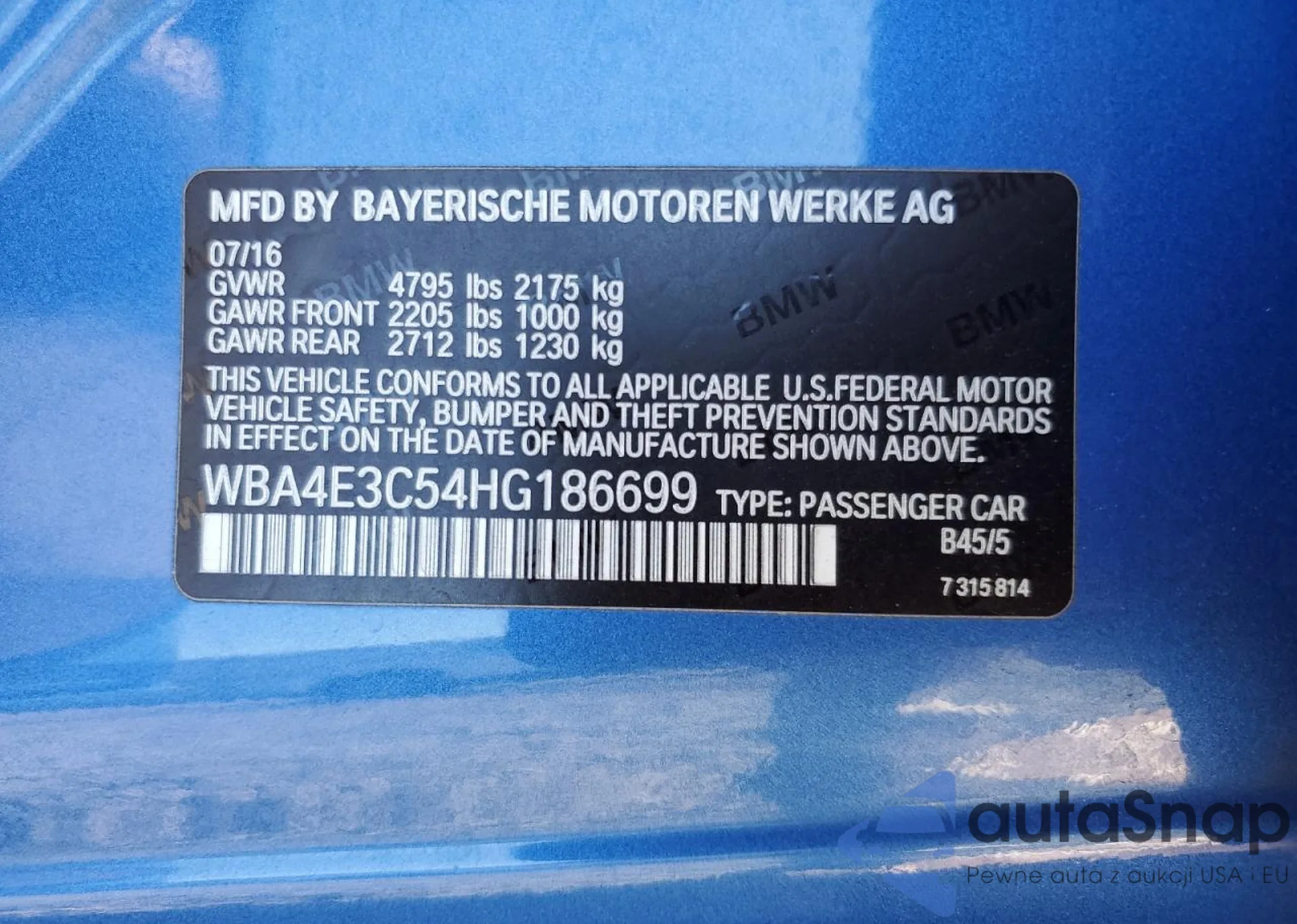 VIN: WBA4E3C54HG186699