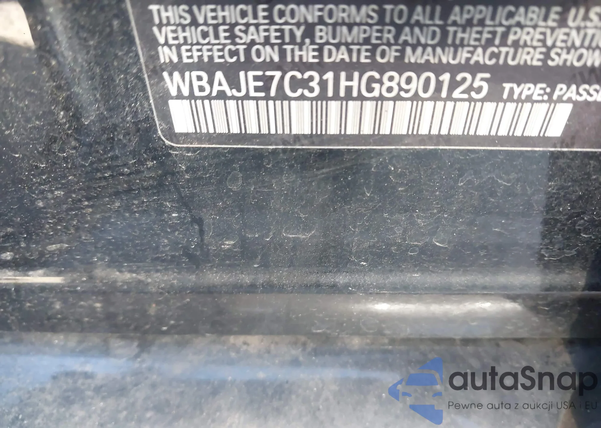 VIN: WBAJE7C31HG890125