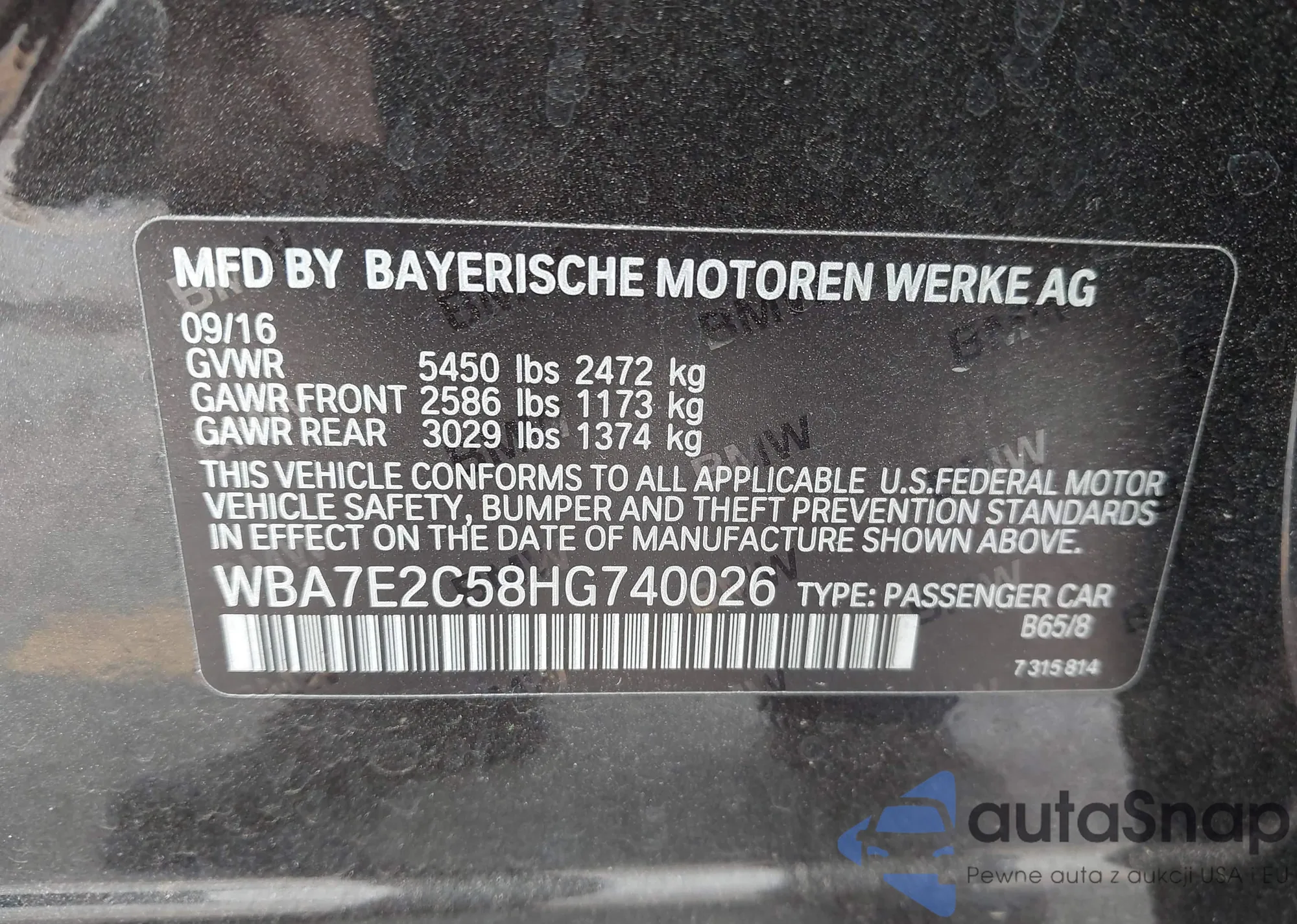 • VIN: WBA7E2C58HG740026