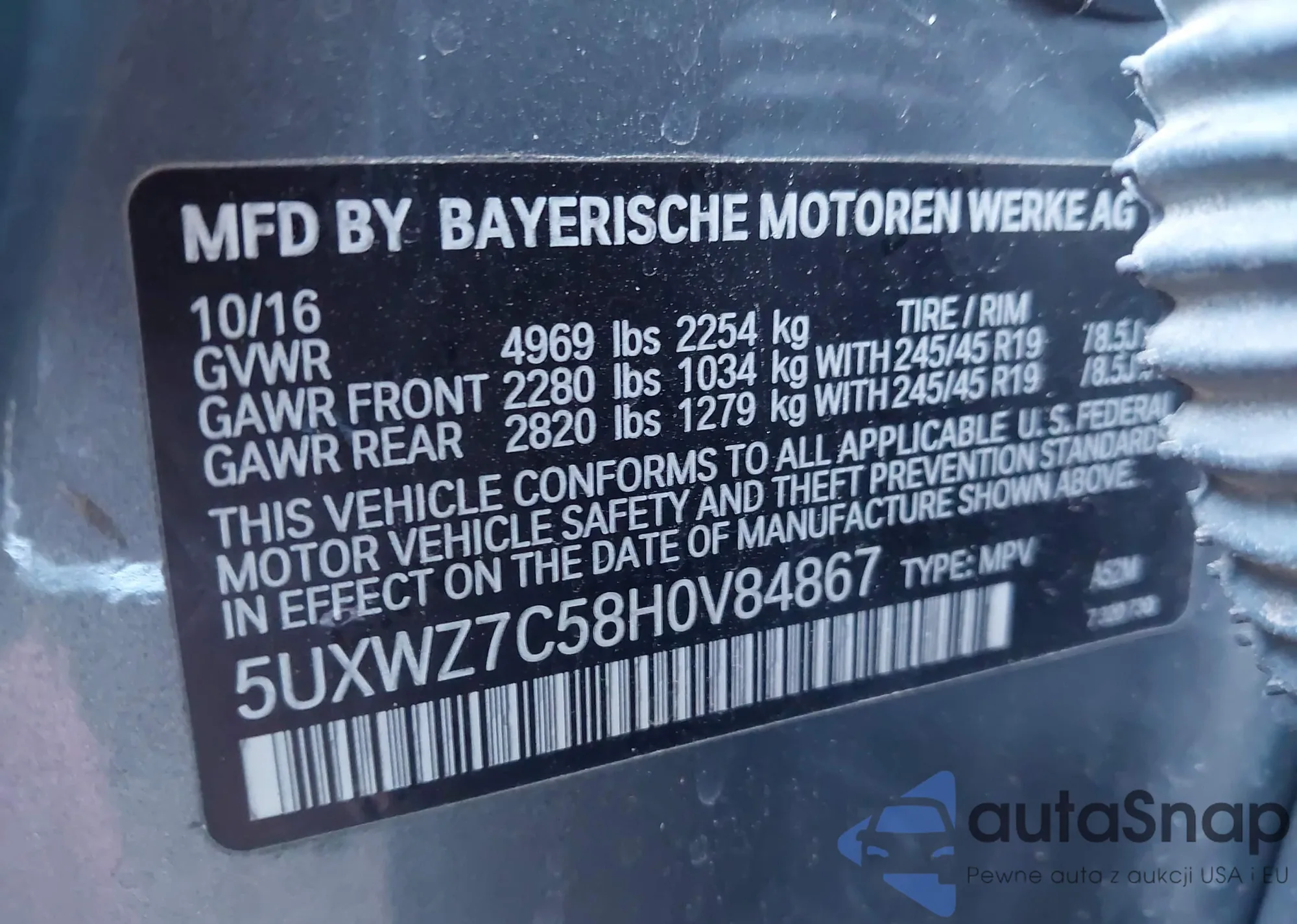 VIN: 5UXWZ7C58H0V84867