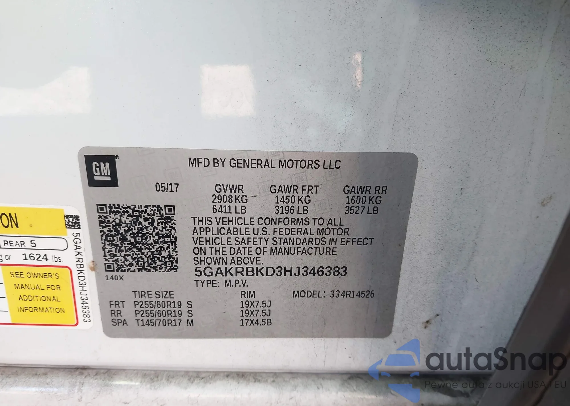 • VIN: 5GAKRBKD3HJ346383