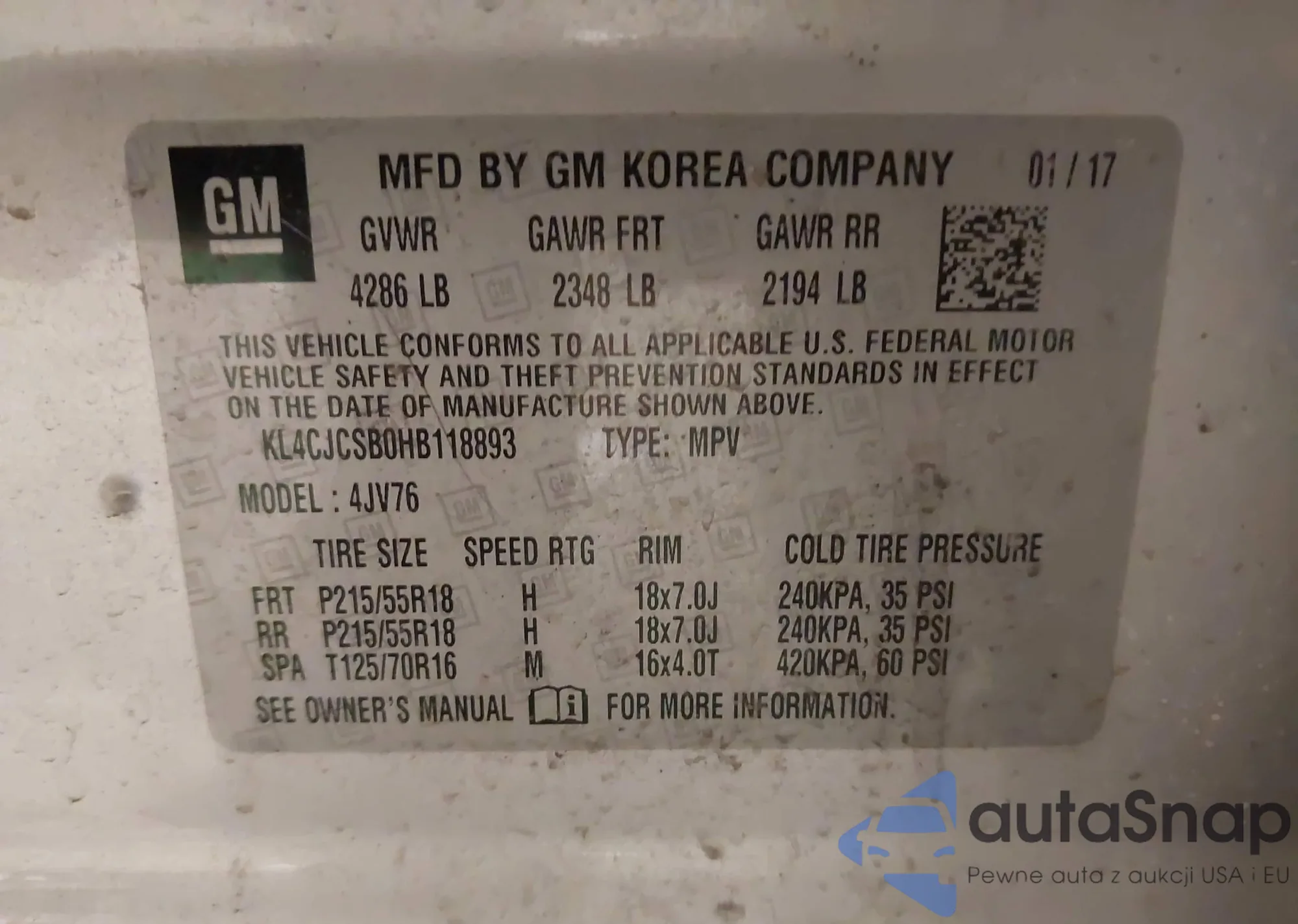 VIN: KL4CJCSB0HB118893