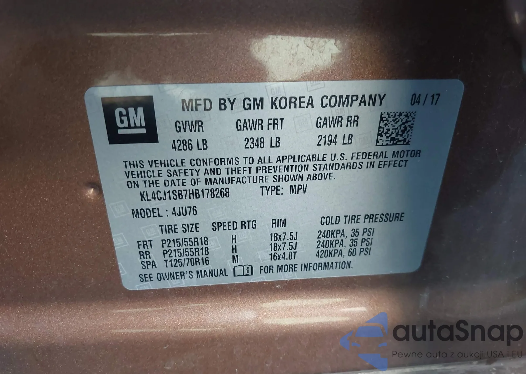 • VIN: KL4CJ1SB7HB178268