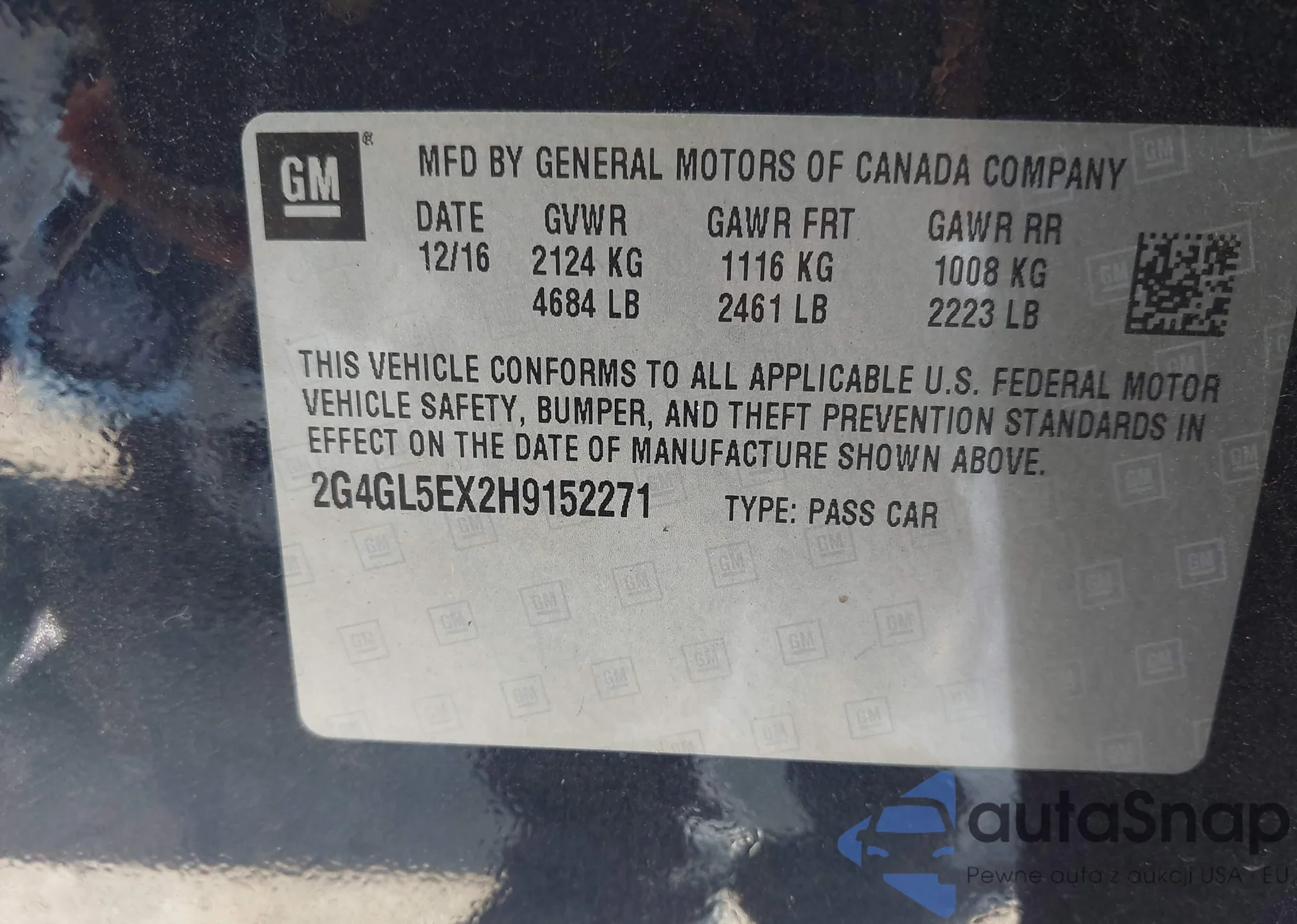 Автомобиль Buick Regal 2017 (VIN 2G4GL5EX2H9152271) имеет документы, препятствующие регистрации. Могут возникнуть сложности при экспорте и регистрации. Обратитесь к экспертам AutaSnap для поиска альтернатив.