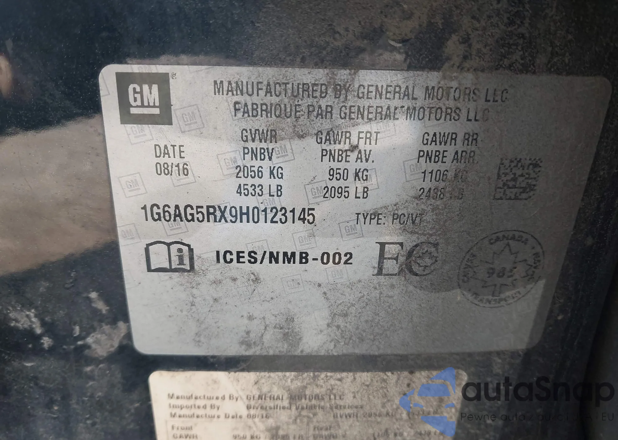 VIN: 1G6AG5RX9H0123145