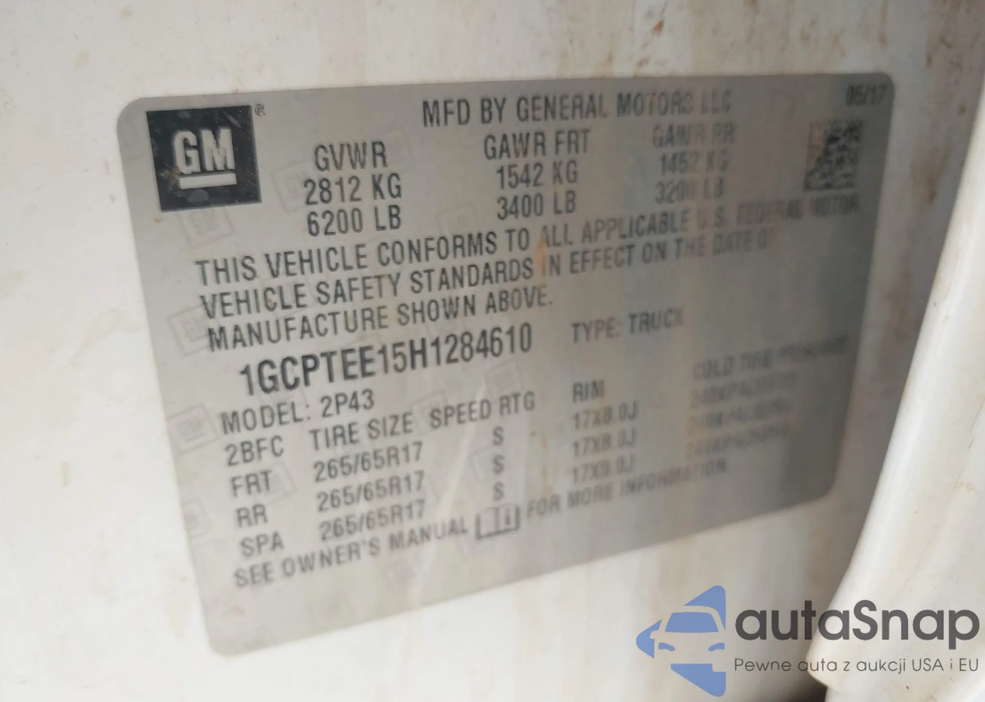 VIN: 1GCPTEE15H1284610