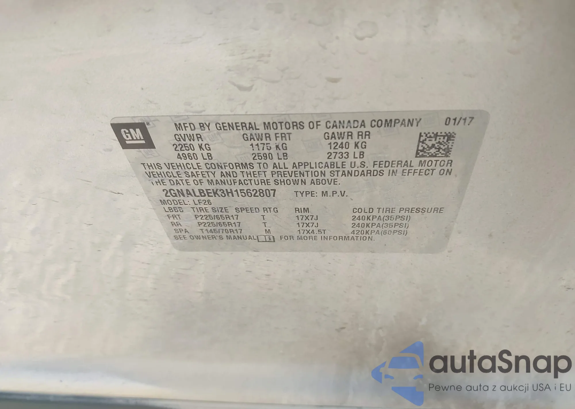 VIN: 2GNALBEK3H1562807