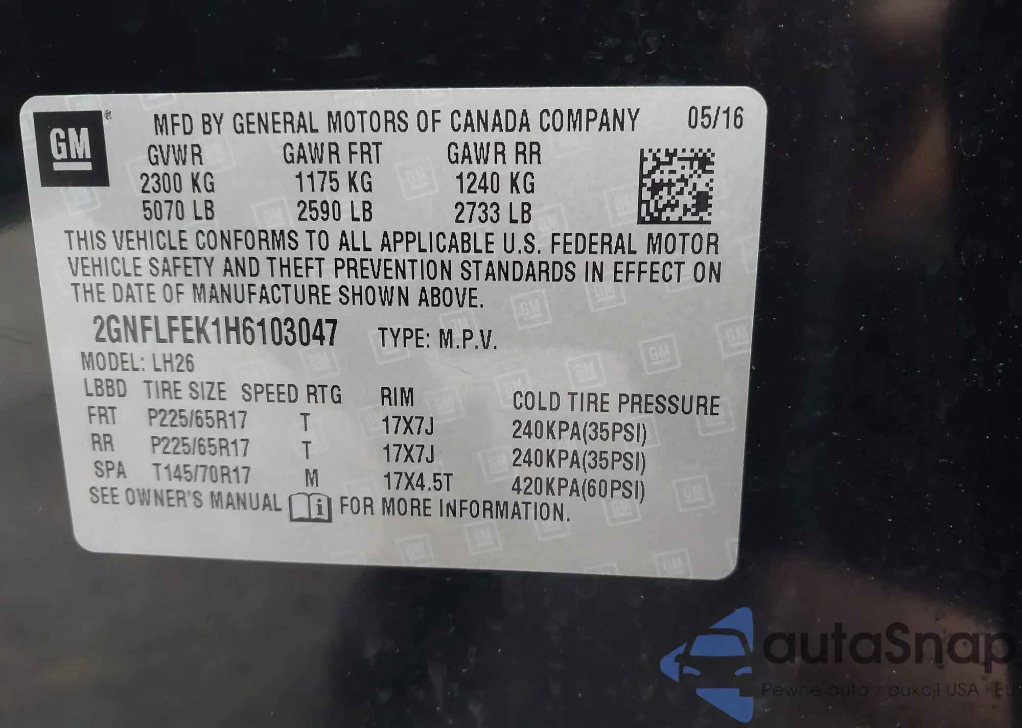 VIN: 2GNFLFEK1H6103047
