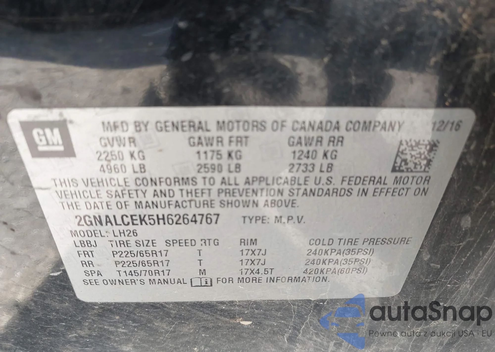 VIN: 2GNALCEK5H6264767