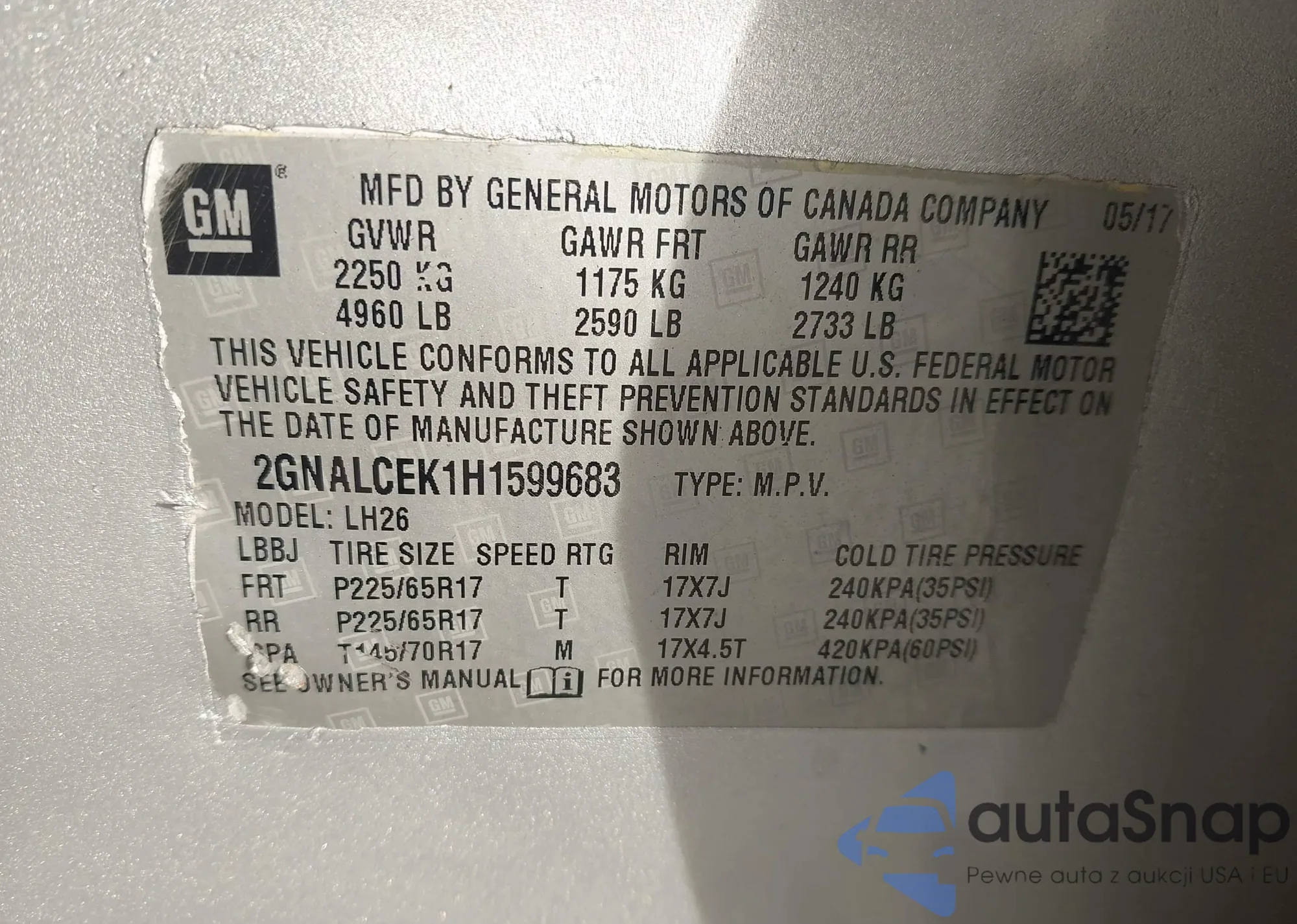 VIN: 2GNALCEK1H1599683