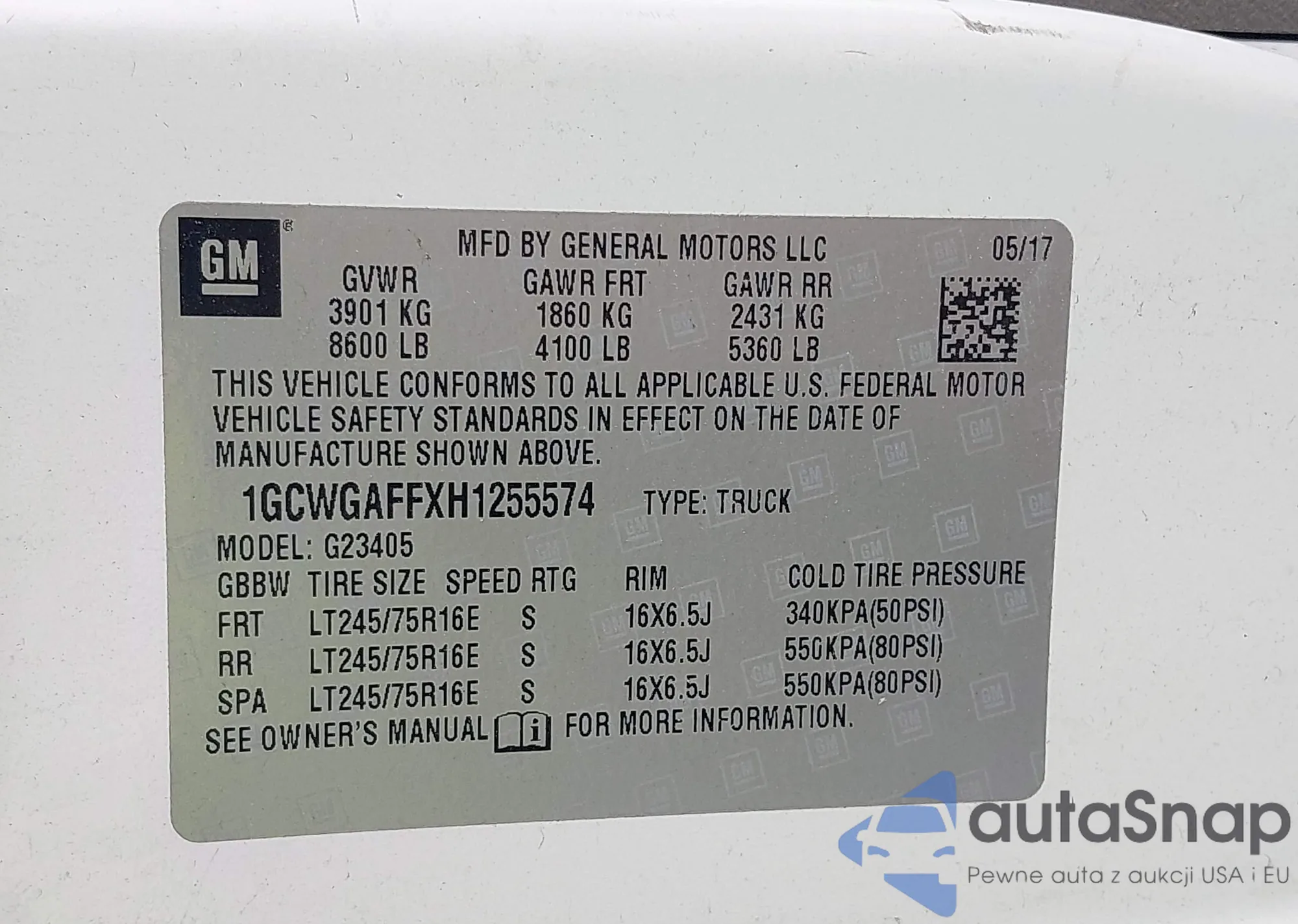 • VIN: 1GCWGAFFXH1255574