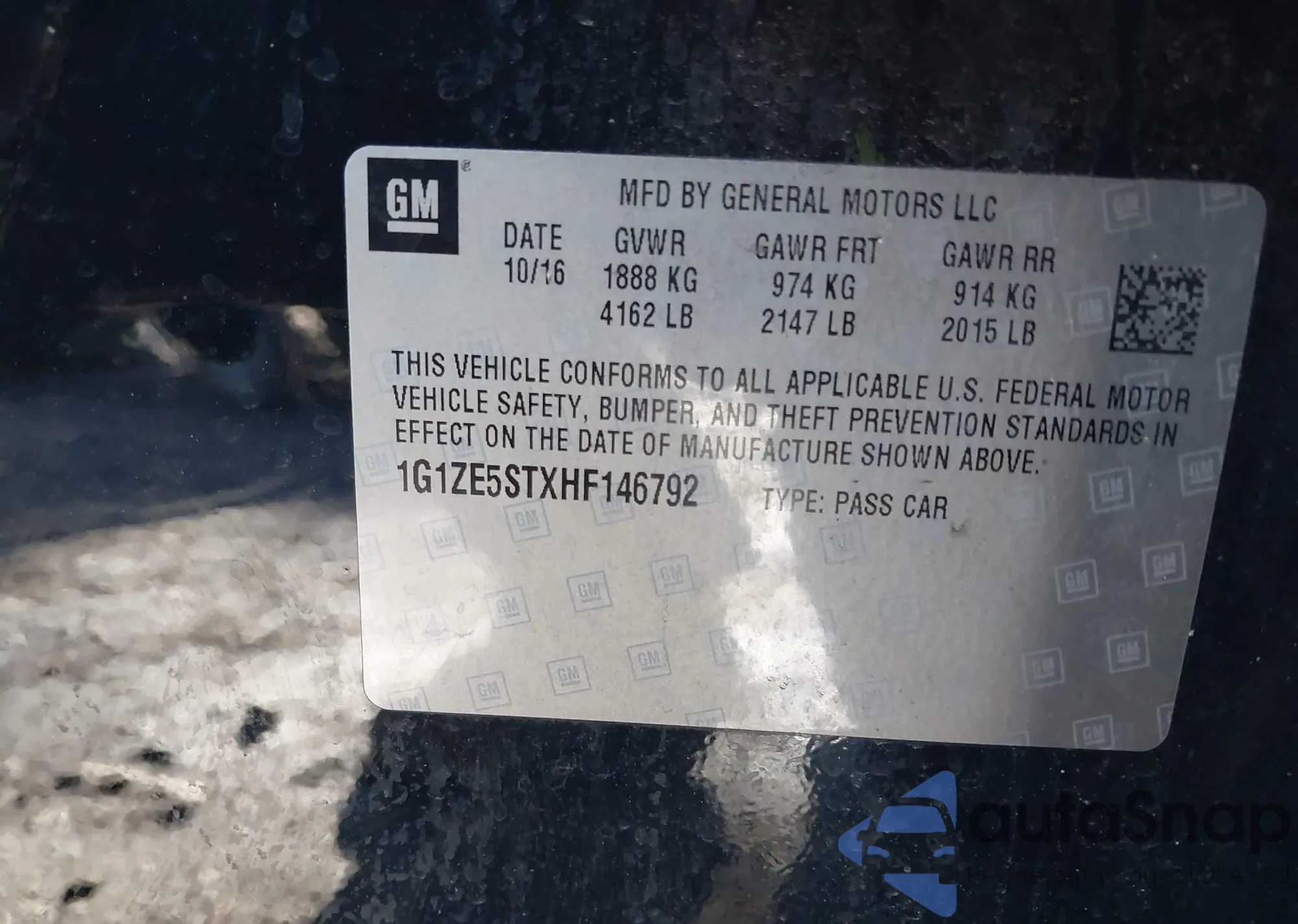 VIN: 1G1ZE5STXHF146792