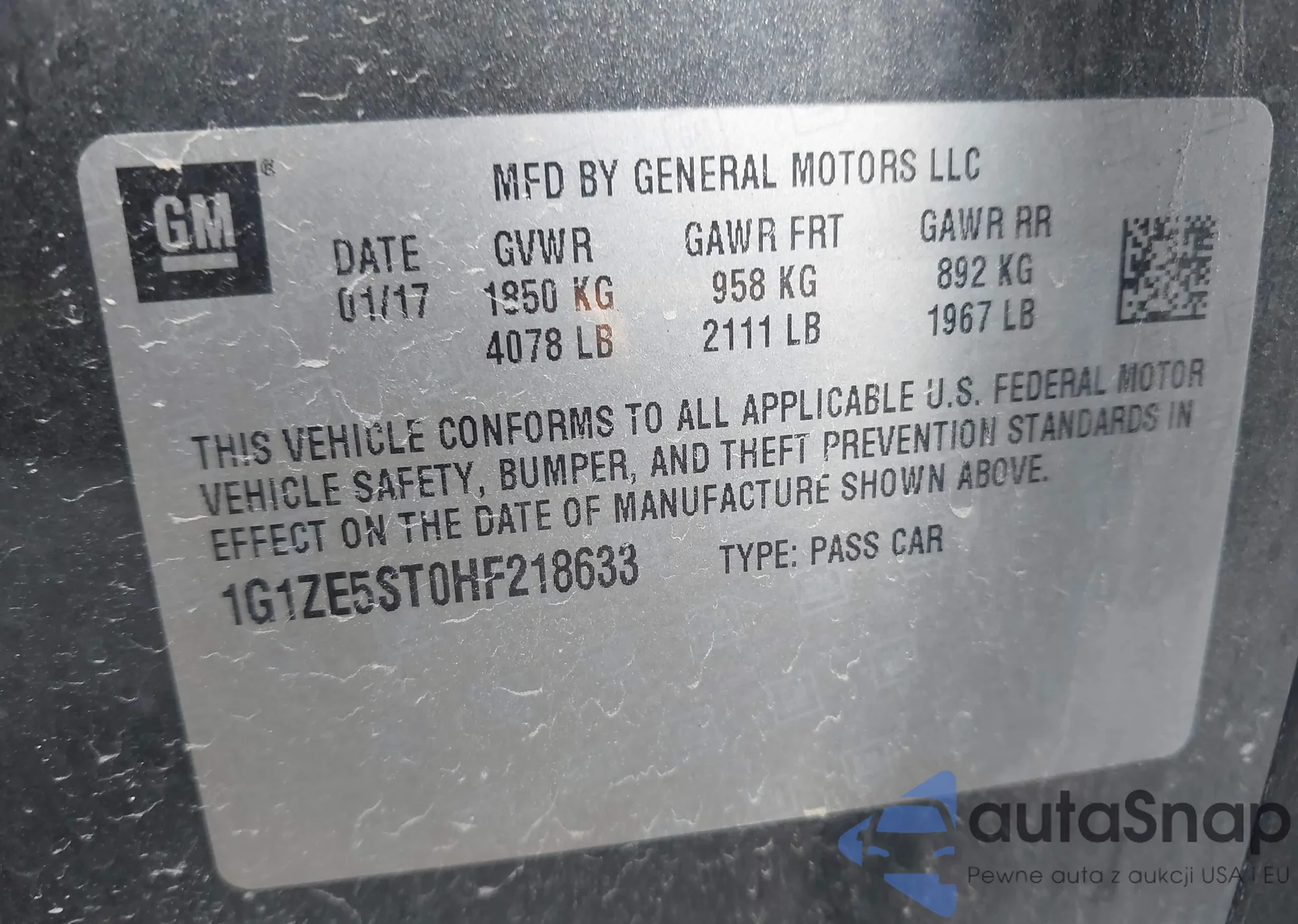 VIN: 1G1ZE5ST0HF218633