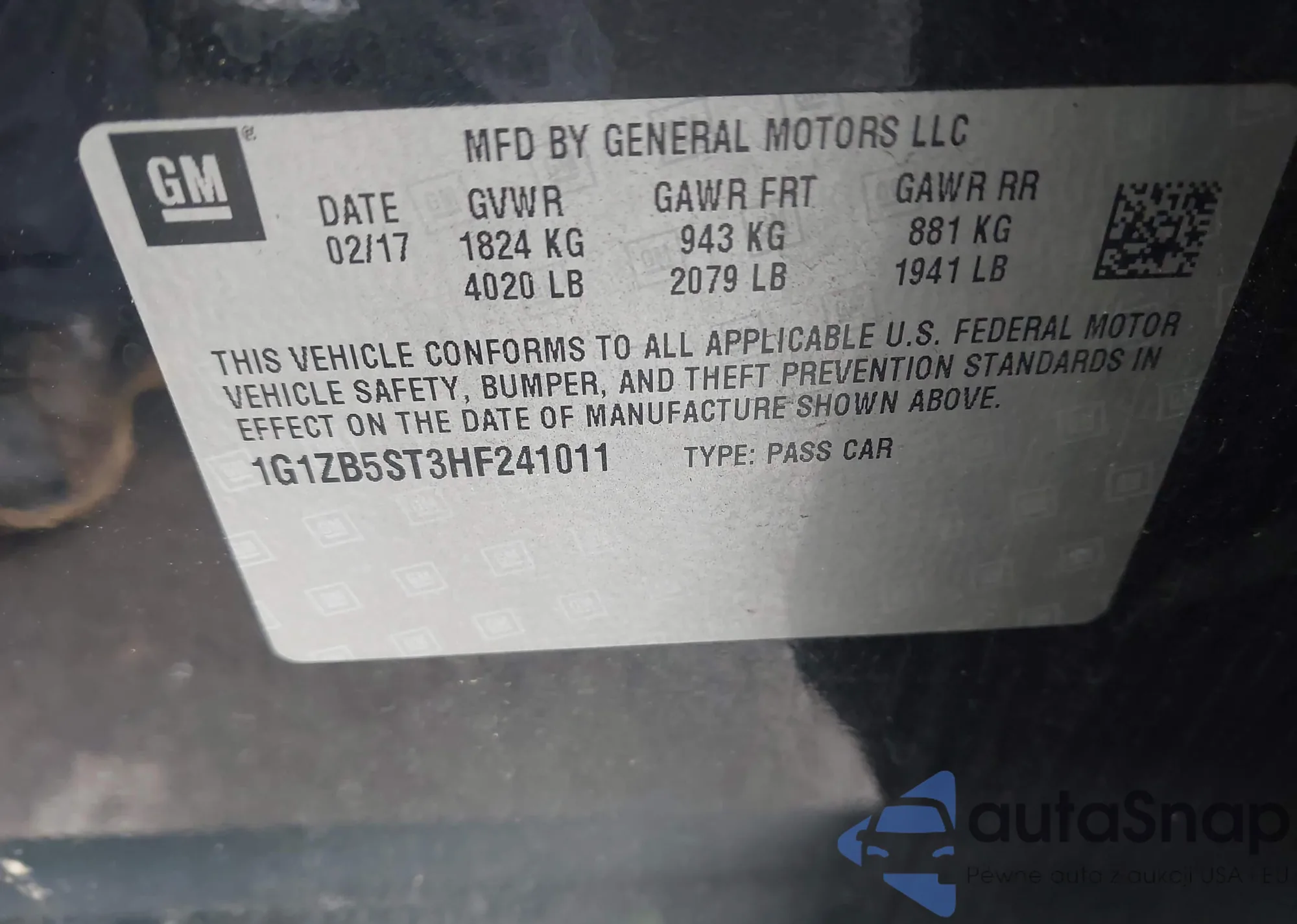 VIN: 1G1ZB5ST3HF241011