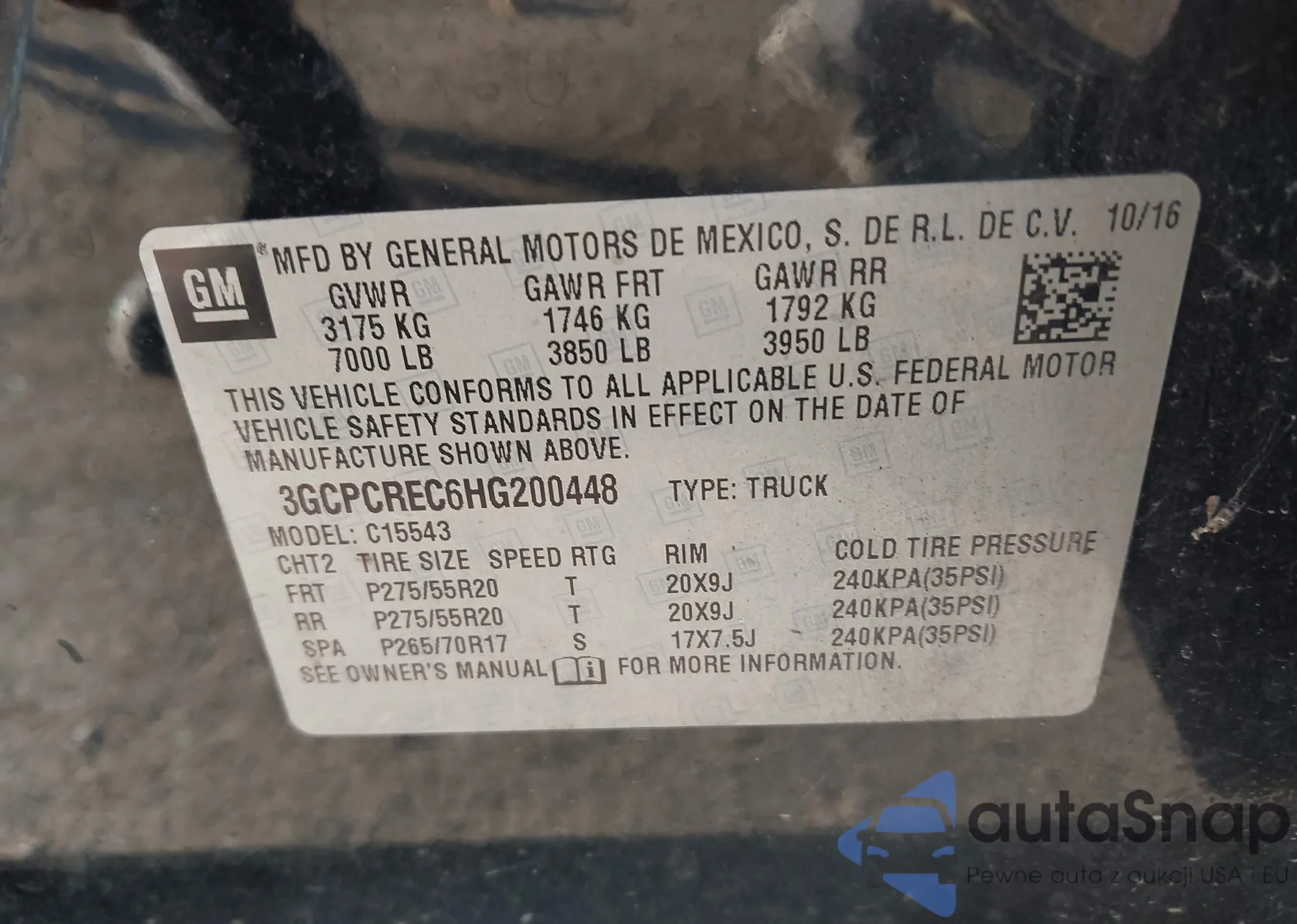 • VIN: 3GCPCREC6HG200448