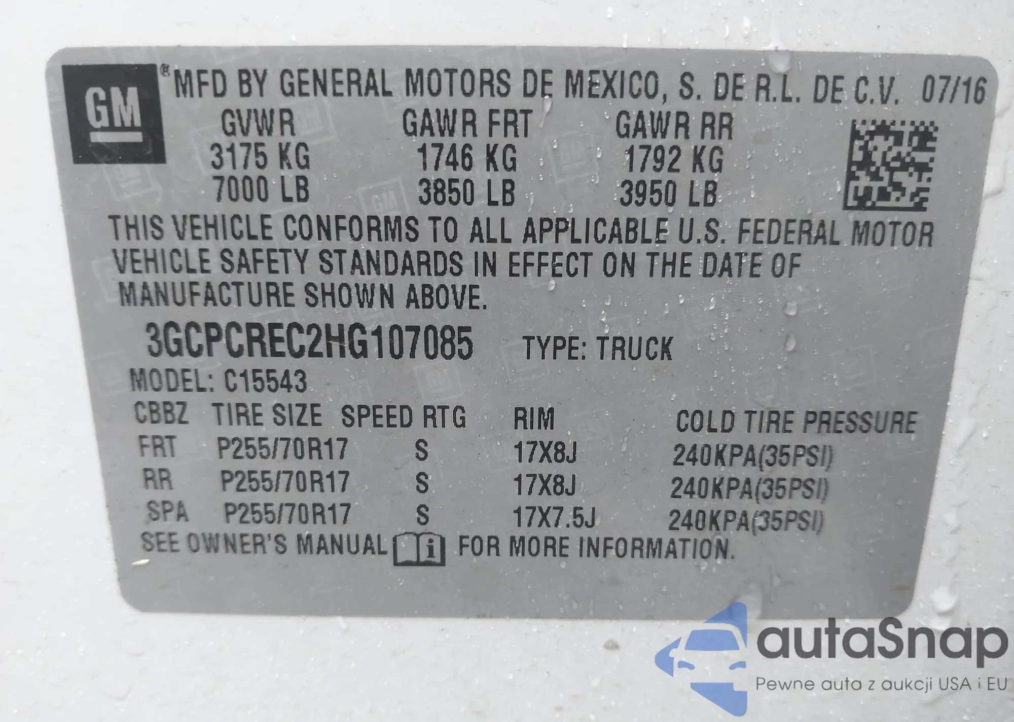 • VIN: 3GCPCREC2HG107085