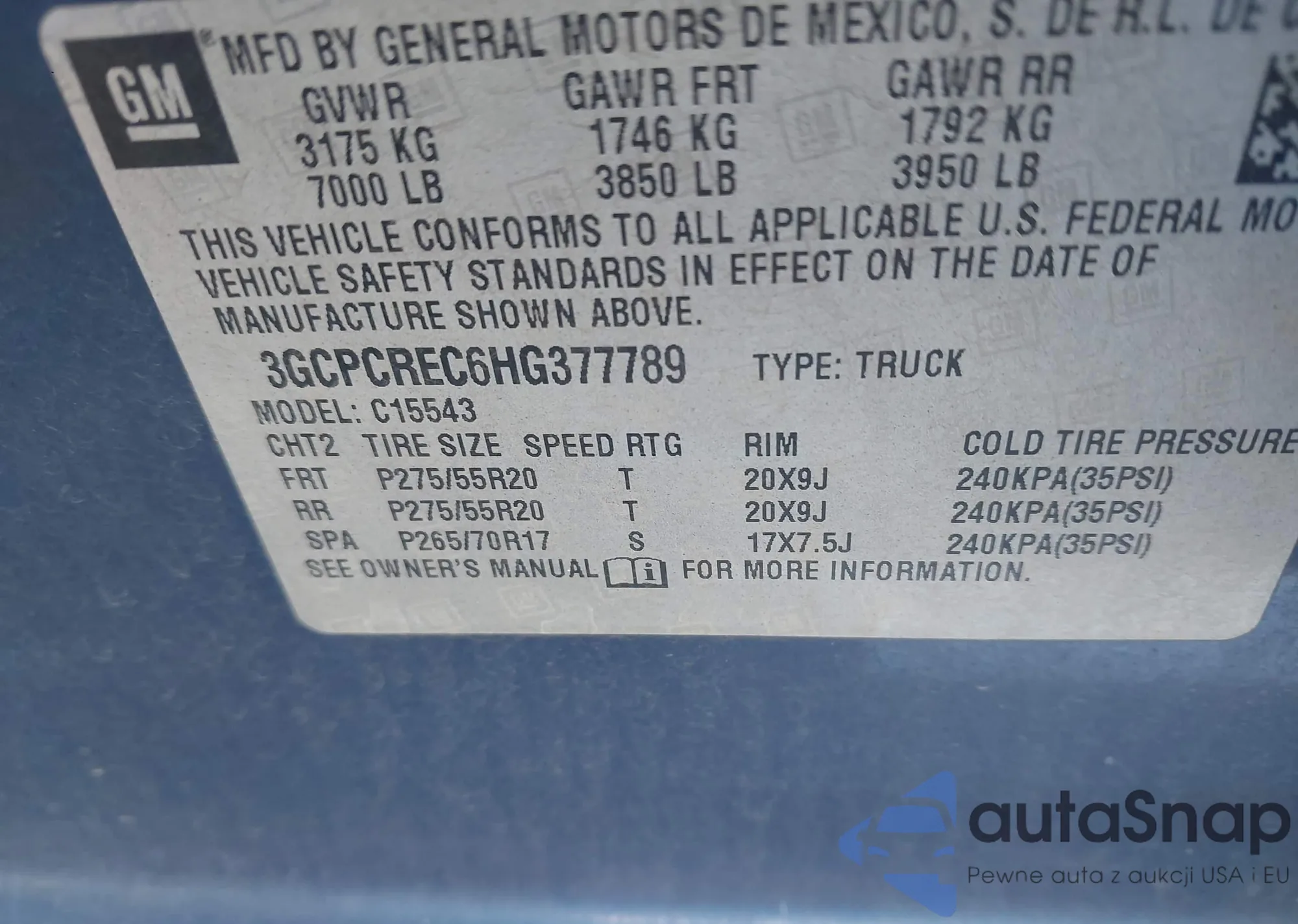 VIN: 3GCPCREC6HG377789