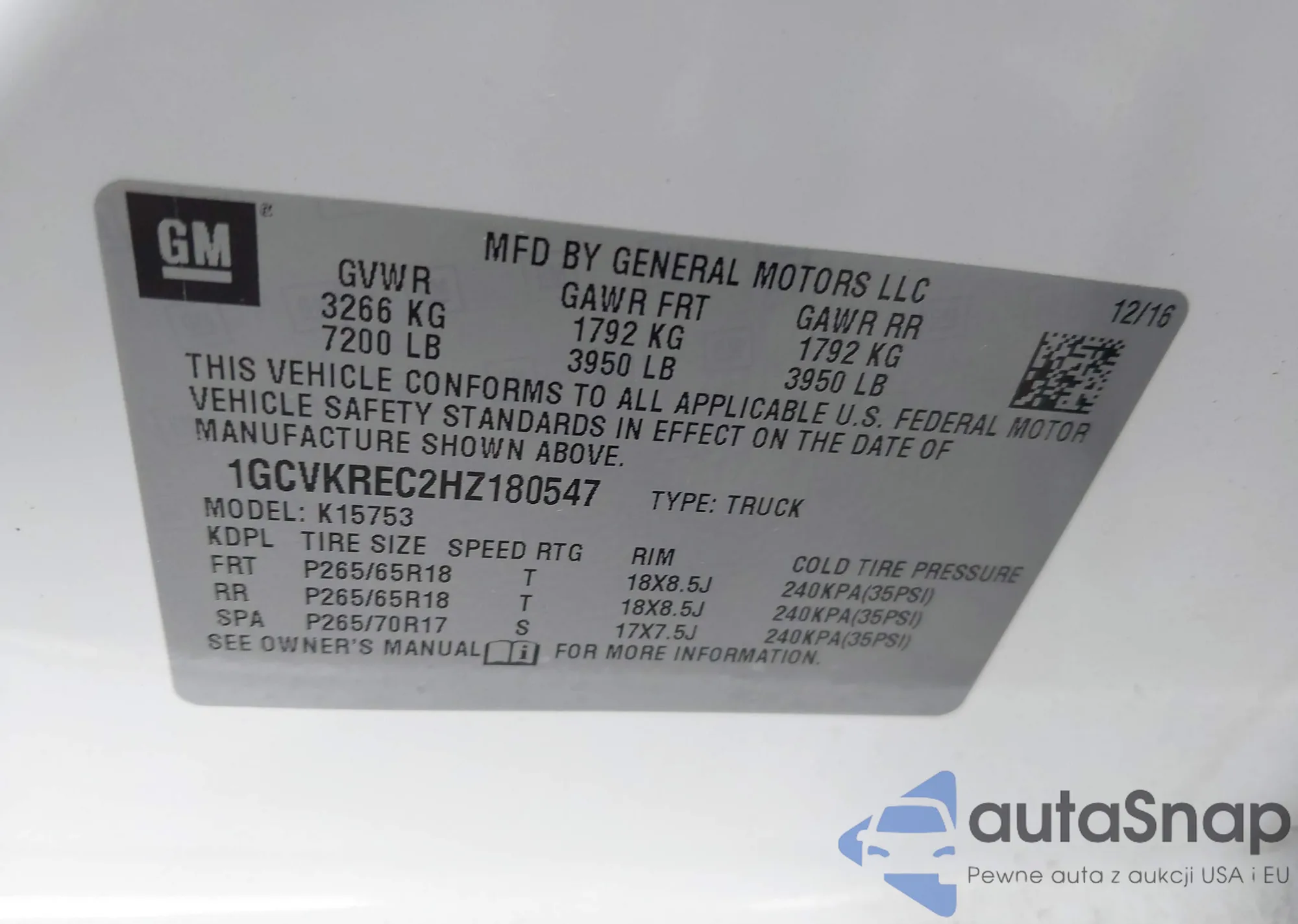 VIN: 1GCVKREC2HZ180547