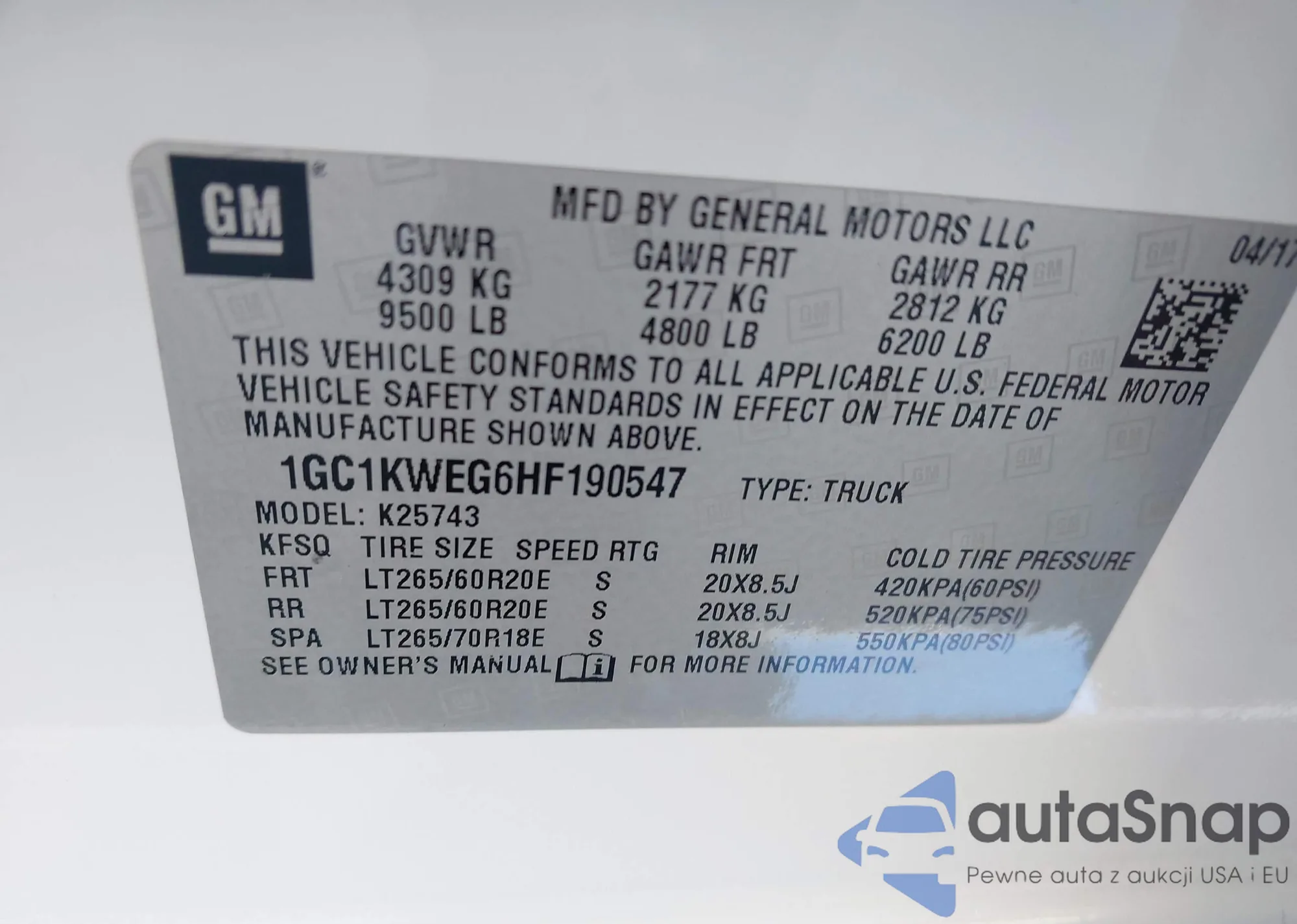 VIN: 1GC1KWEG6HF190547