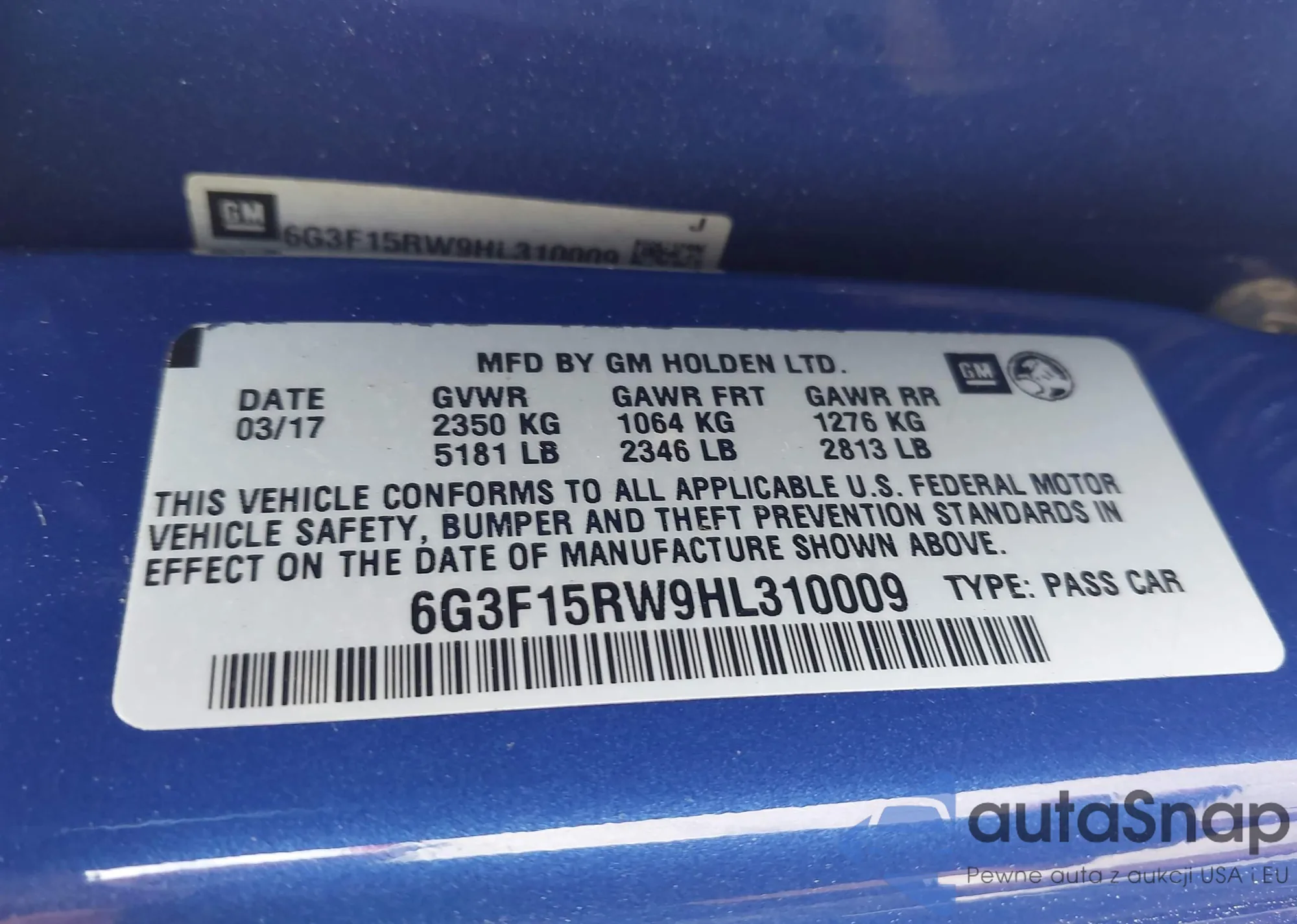 Автомобиль Chevrolet SS 2017 (VIN 6G3F15RW9HL310009) ранее не участвовал в торгах. Документы чистые, пробег соответствует или ниже среднего по рынку. Продаётся страховой компанией — рекомендуем покупку. Доставка в порт займет около 6–8 недель.