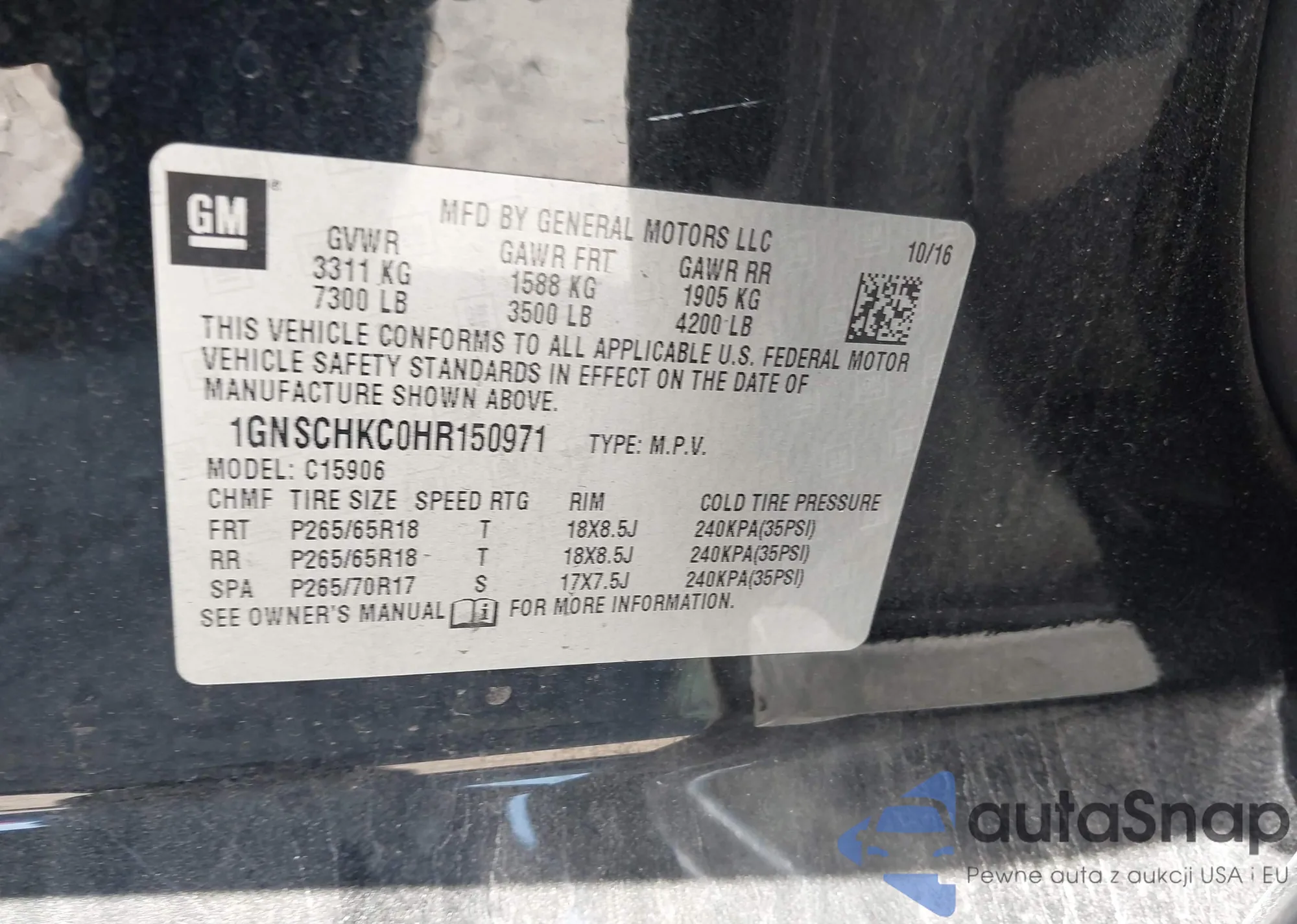 Автомобиль Chevrolet Suburban 2017 (VIN 1GNSCHKC0HR150971) имеет документы, препятствующие регистрации. Могут возникнуть сложности при экспорте и регистрации. Обратитесь к экспертам AutaSnap для поиска альтернатив.