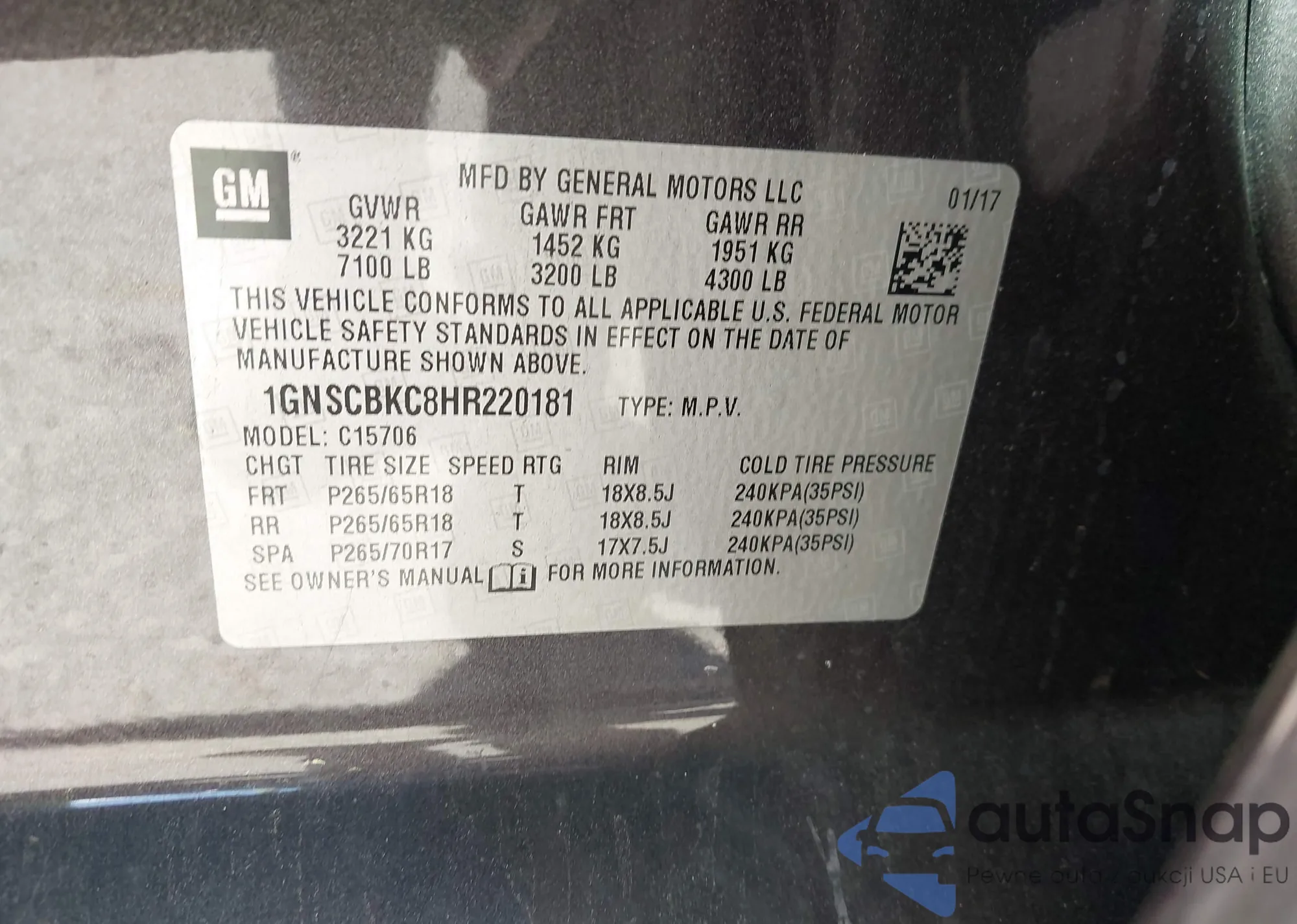 • VIN: 1GNSCBKC8HR220181