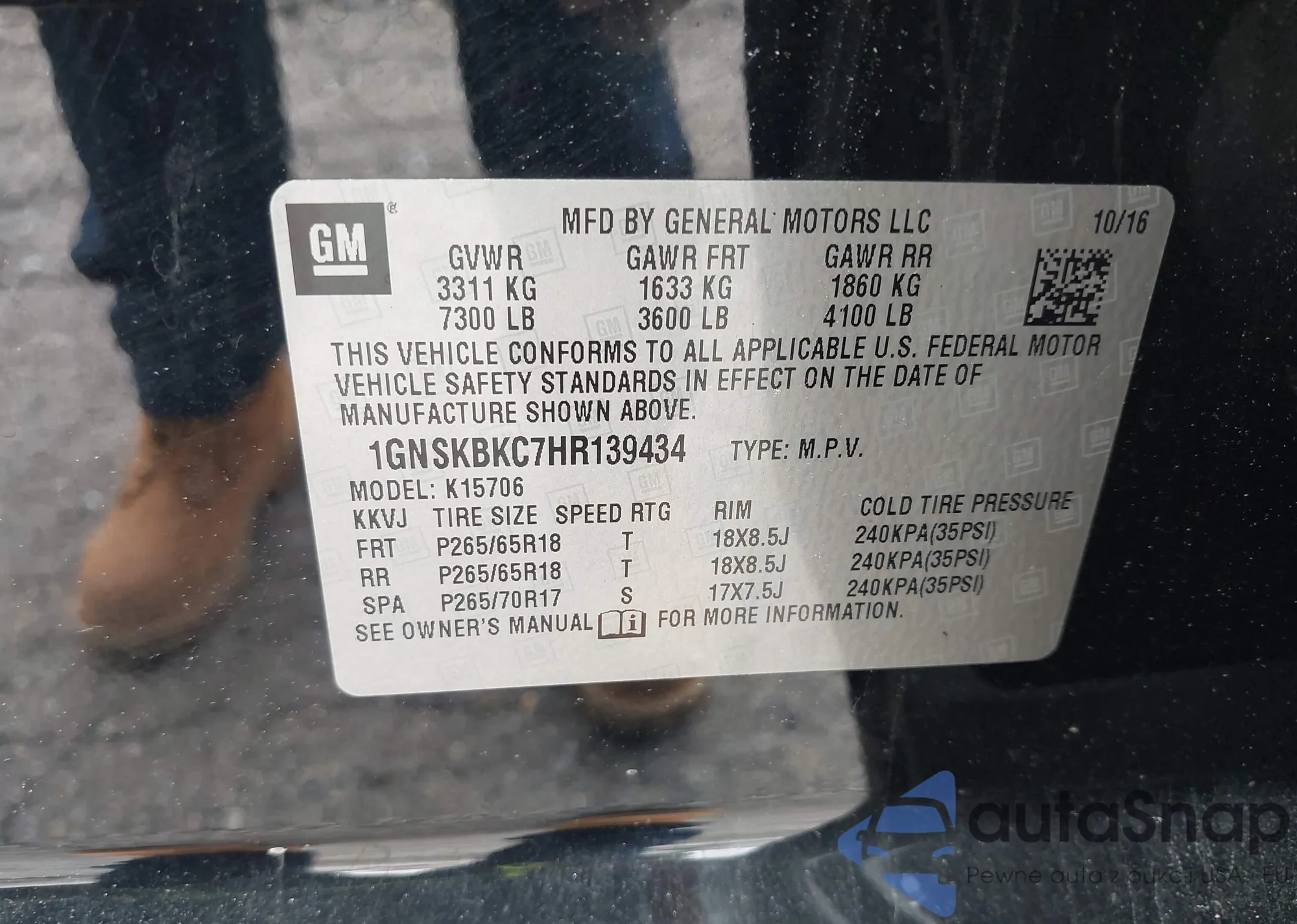VIN: 1GNSKBKC7HR139434