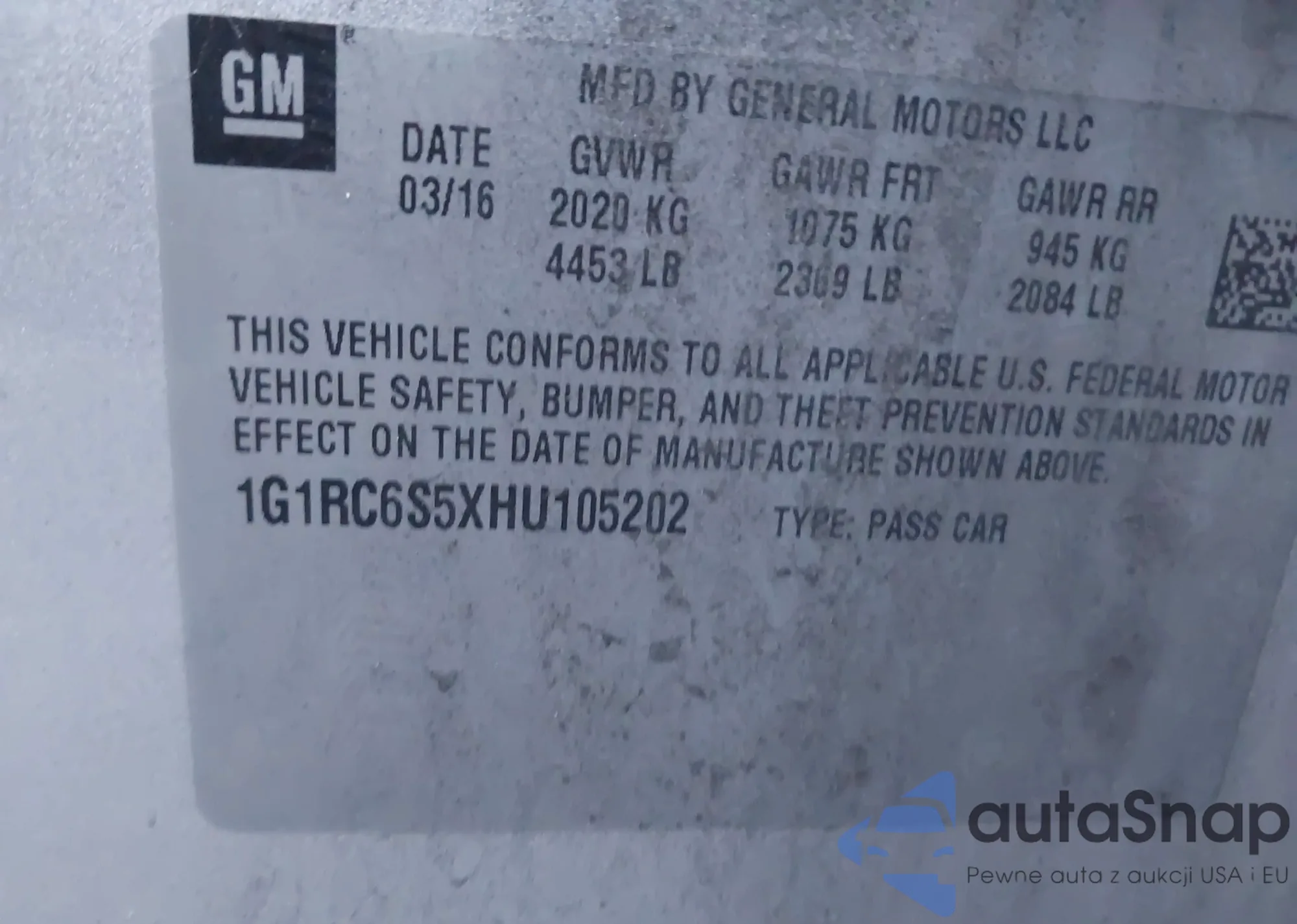 VIN: 1G1RC6S5XHU105202